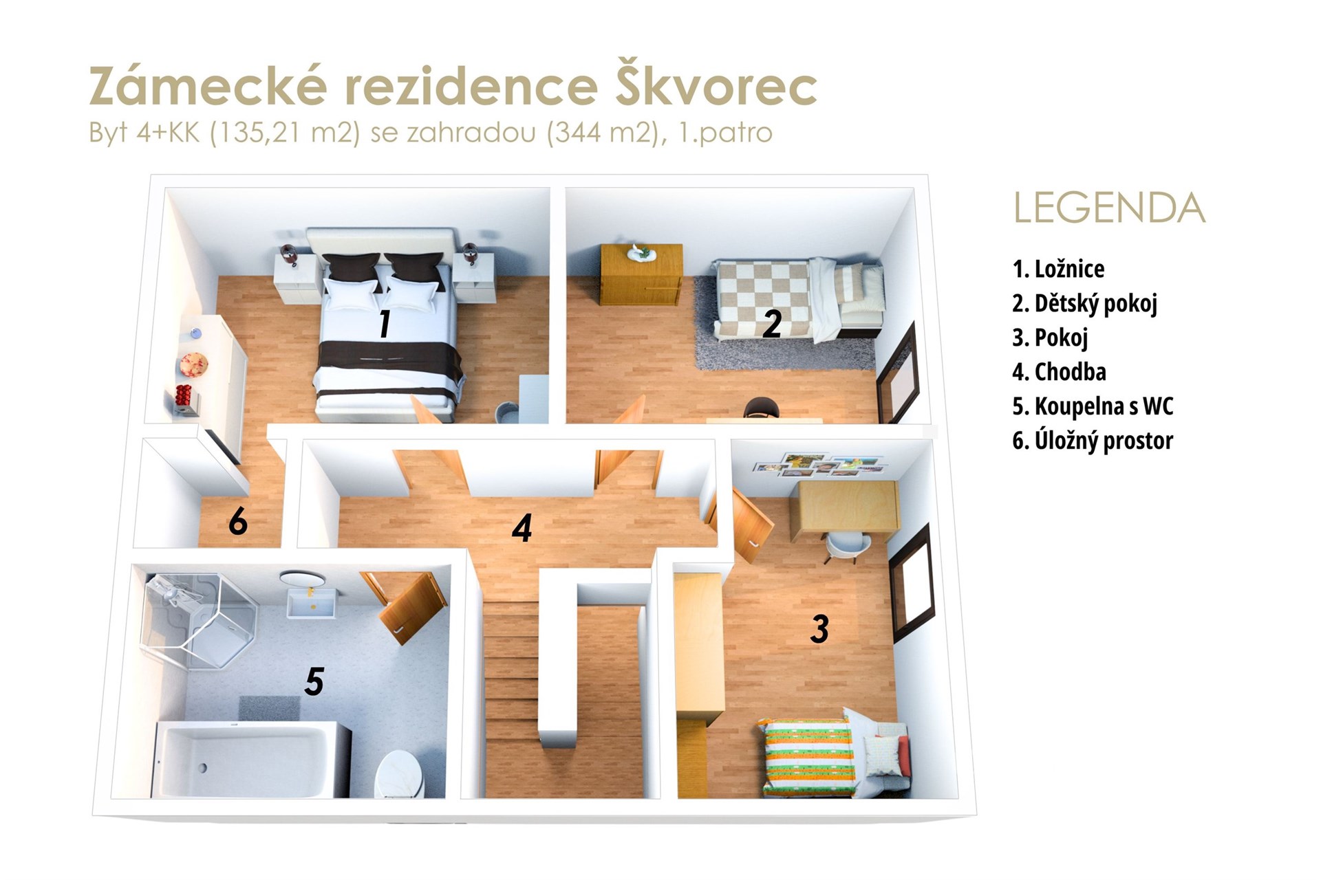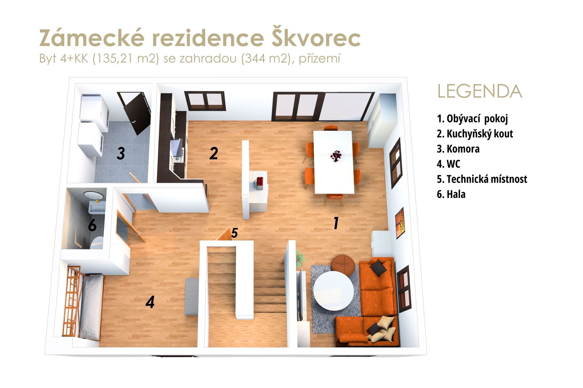 Hledáte moderní bydlení s vlastní zahradou a komfortem rodinného domu? Nabízíme byt 4+kk o ploše 135 m² v novém rezidenčním projektu Zámecké rezidence Škvorec. K bytu patří prostorná zahrada 344 m², garážové stání a venkovní parkovací místo. Součástí domu jsou jen tři jednotky, takže si užijete soukromí a atmosféru rodinného domu. Co vás nadchne: Nízkoenergetický dům s vlastním plynovým kotlem a podlahovým vytápěním Příprava pro chytrou domácnost, kamerový a zabezpečovací systém Příprava pro fotovoltaickou elektrárnu, venkovní bazén a dobíjecí stanici pro elektromobil Proč Škvorec: Klidné bydlení v krásné přírodě, přitom Praha na dosah – vlakem na Masarykovo nádraží za 35 minut, autem do Prahy Černý Most za 20 minut. Ideální pro rodinu i práci z domova s možností relaxace na vlastní zahradě nebo venkovním posezení. Občanská vybavenost v dosahu: V Škvorci najdete mateřskou školu i základní školu a potraviny přímo v obci — ideální pro rodiny s dětmi i každodenní pohodlí. V nedalekých Úvalech je pak širší nabídka služeb a vybavenosti, včetně lékařů, lékárny, větších obchodů (např. Tesco) či dalších služeb. Cena: Shell & Core: 11 441 600 Kč (vybavíte si byt přesně podle svého vkusu) Standard developera: 12 041 600 Kč (podlahy, dveře s obložkami, zásuvky, kompletně vybavené koupelny) Financování: S financováním vám rádi pomůžeme – kompletní servis včetně vyřízení hypotečního úvěru. Přijďte si prohlédnout tento byt osobně – vaše nové bydlení v Zámecké rezidenci Škvorec vás nadchne. Pokud Vás nabídka zaujala, neváhejte mě zkontaktovat.