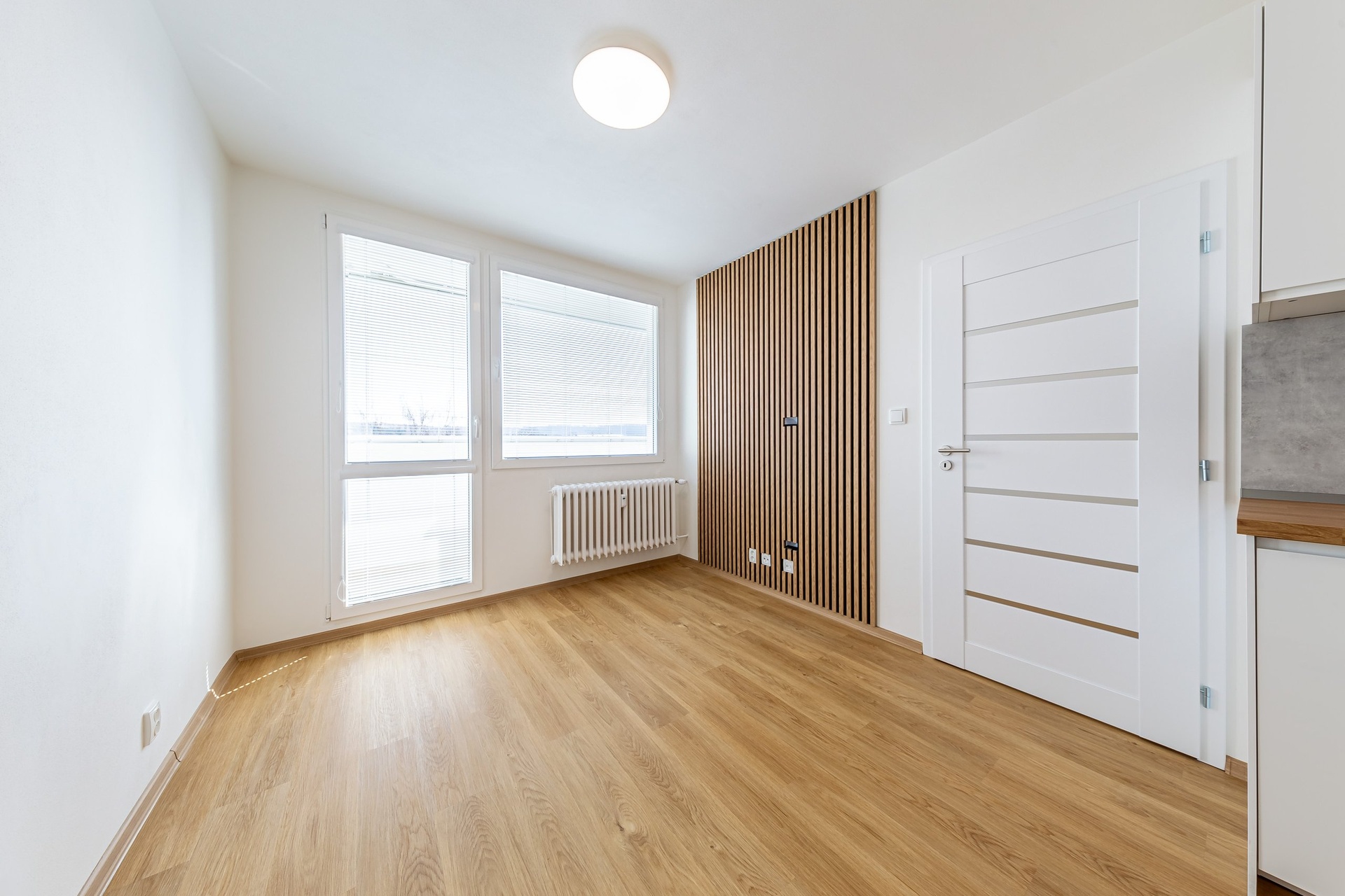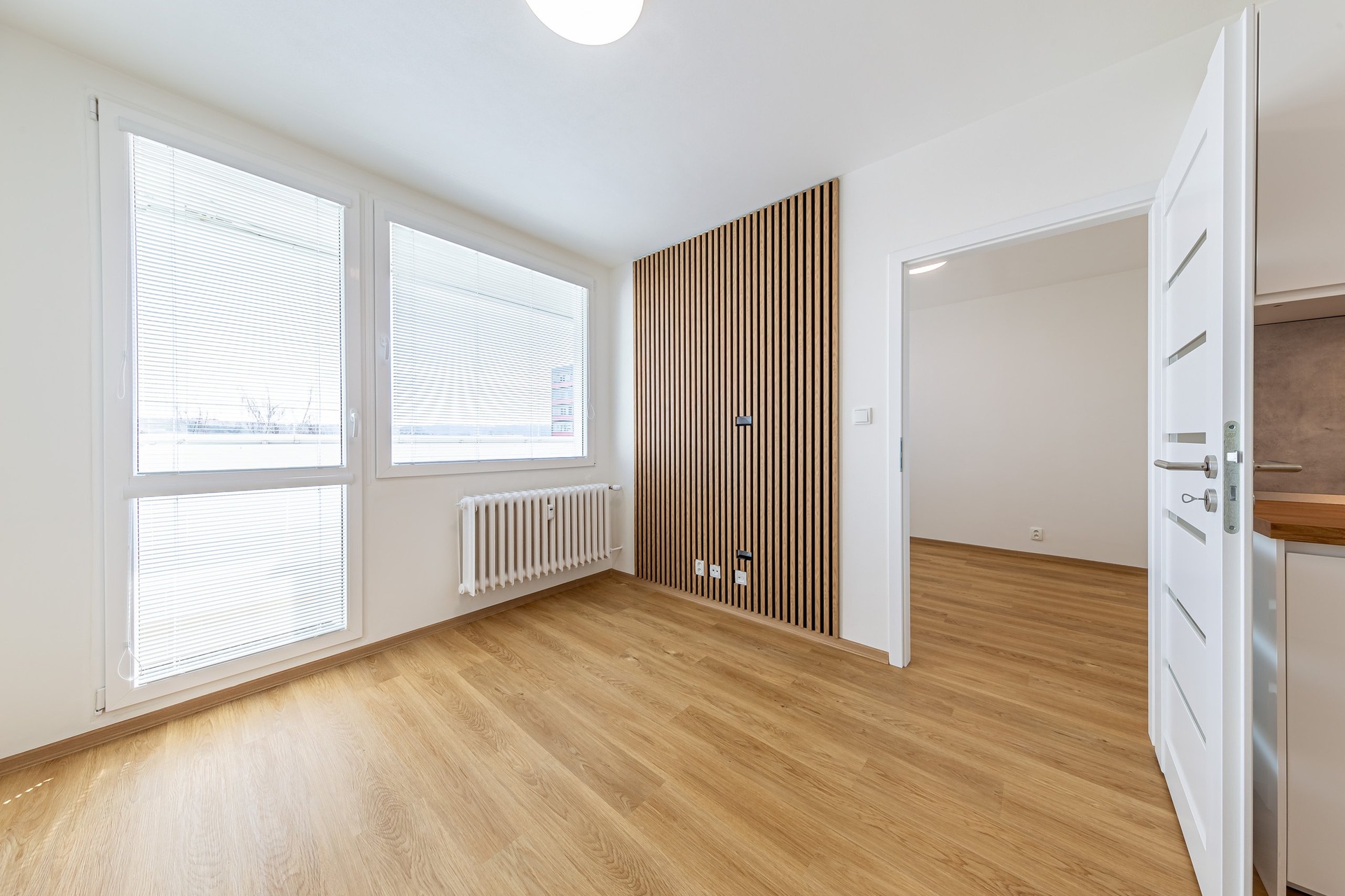 Exkluzivně nabízíme k prodeji byt ve Slaném, ulice Vítězná. Byt s dispozicí 4+kk včetně lodžie v osobním vlastnictví o celkové výměře 72 m². Byt prošel kompletní nadstandardní rekonstrukcí, která byla dokončena 03/2026 a splňuje kritéria moderního bydlení. Dispozici bytu tvoří obývací pokoj s kuchyňským koutem, ložnice, 2x pokoj, chodba, WC, koupelna a lodžie. V bytě je nová elektroinstalace včetně revize, nové zásuvky a vypínače, nové rozvody vody a odpadů, koupelna s vanou včetně skleněné zástěny, koupelnová skříňka s umyvadlem včetně baterie, LED zrcadlo, LED osvětlení panelu včetně niky v koupelně, elektrický koupelnový radiátor, podlahové vytápění v koupelně a na WC, vestavěné WC, umývátko se skříňkou, bidetová sprška, LED zrcadlo, LED osvětlení panelu, ventilátor, nové horizontální žaluzie, vinylové podlahy, LED osvětlení celého bytu, akustické panely na chodbě a obývacím pokoji, nové interiérové dveře a zárubně, protipožární dveře. Nová kuchyňská linka včetně vestavěných spotřebičů (myčka, horkovzdušná trouba včetně indukční varné desky, lednice, digestoř, mikrovlnná trouba), LED osvětlení pracovní desky, nerezový kuchyňský dřez, dřezová stojánková baterie s elastickým ramenem. Byt má velmi nízké měsíční poplatky za fond oprav. Jedná se o světlý a moderní byt s krásným výhledem do okolí. Chytré řešení dispozice bytu vytváří útulný dojem. K bytu patří sklepní kóje, lodžie a komora. Možnost využití kočárkárny a kolárny. Bytový dům je po celkové revitalizaci. Zateplená fasáda, střecha, plastová okna, zrekonstruované společné chodby. Možnost připojení internetu a TV od Vodafone, O2 a dalších poskytovatelů. Byt se nachází v klidné lokalitě s výbornou dostupností MHD a plnou občanskou vybaveností - škola, školka, obchody, supermarket Tesco, obchodní centrum, zdravotnictví, pošta, parky, dětská hřiště. Výborná dostupnost do Prahy, zastávka 100 m od domu, spojení Nádraží Veleslavín 30 minut, dále vlakové spojení. V okolí můžete sportovat i odpočívat v okolí bohatém na zeleň. Sportovce potěší množství cyklostezek, sportovní hala či dráha pro in-line bruslení. Možnost parkování před domem. Lze financovat hypotečním úvěrem, který Vám rádi vyřídíme. Pro více informací nebo prohlídku bytu kontaktujte makléře nemovitosti.