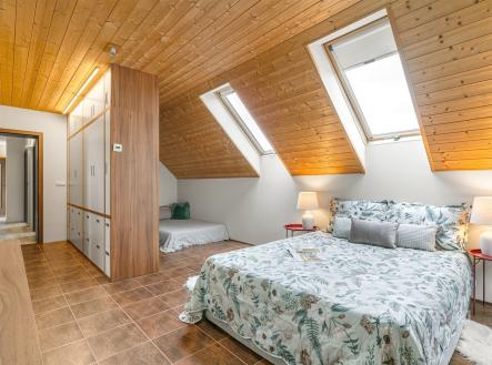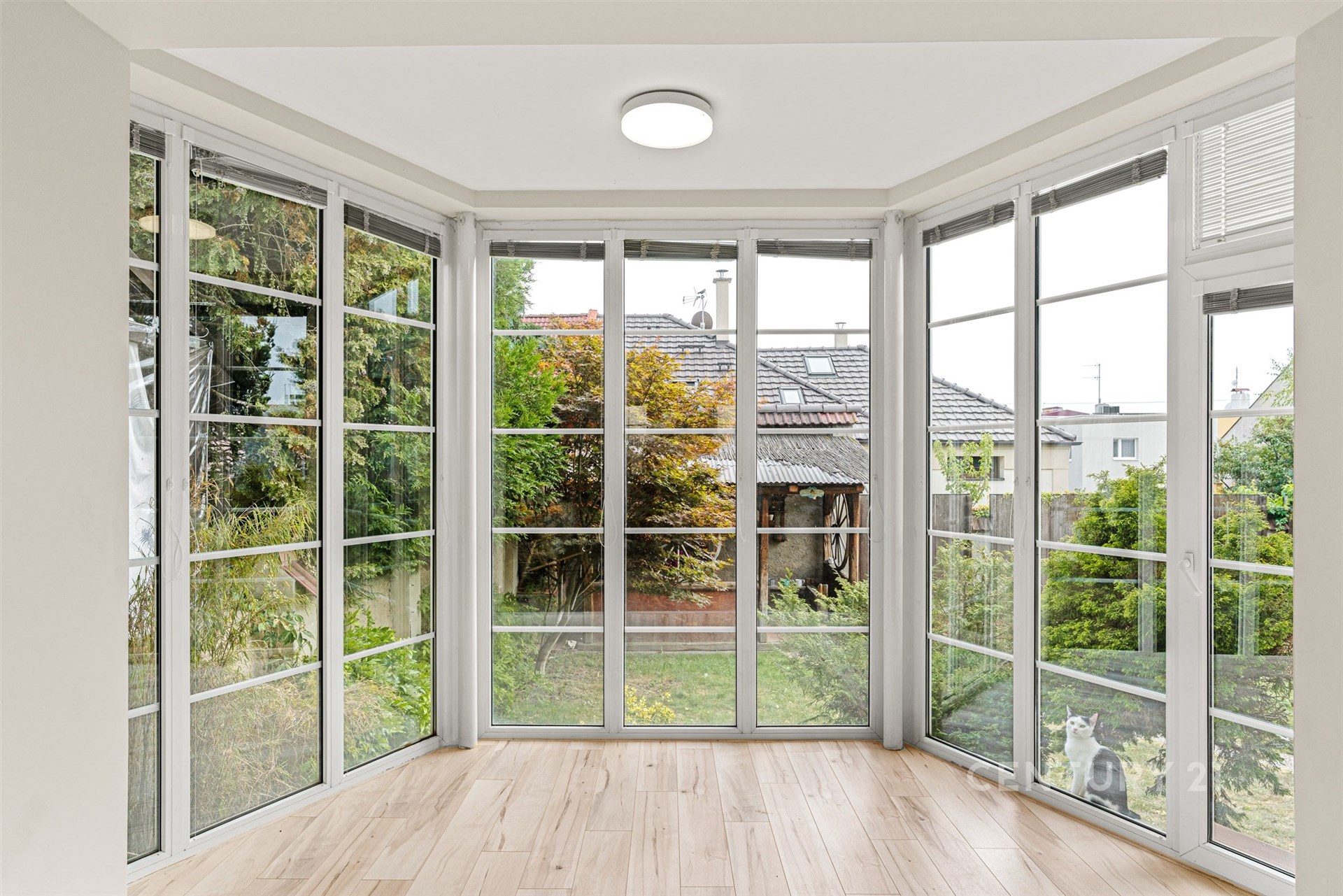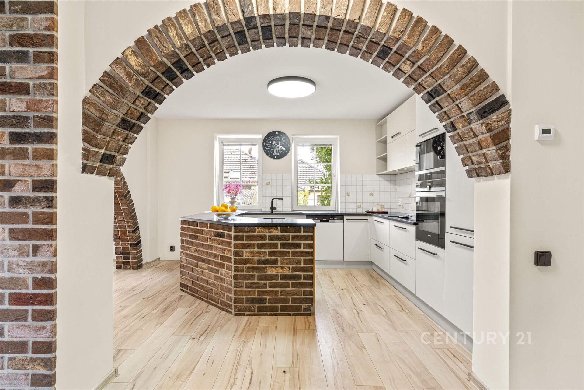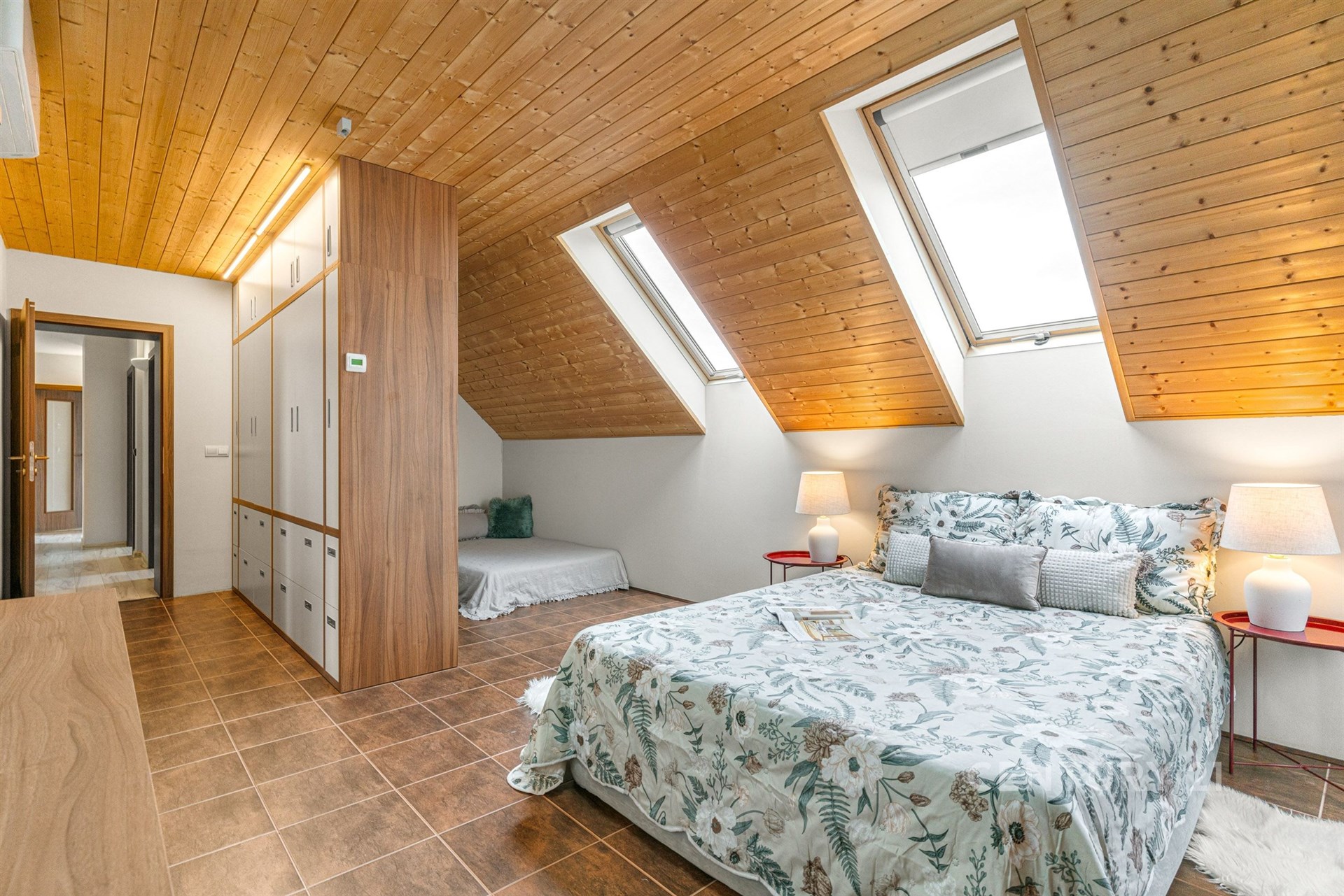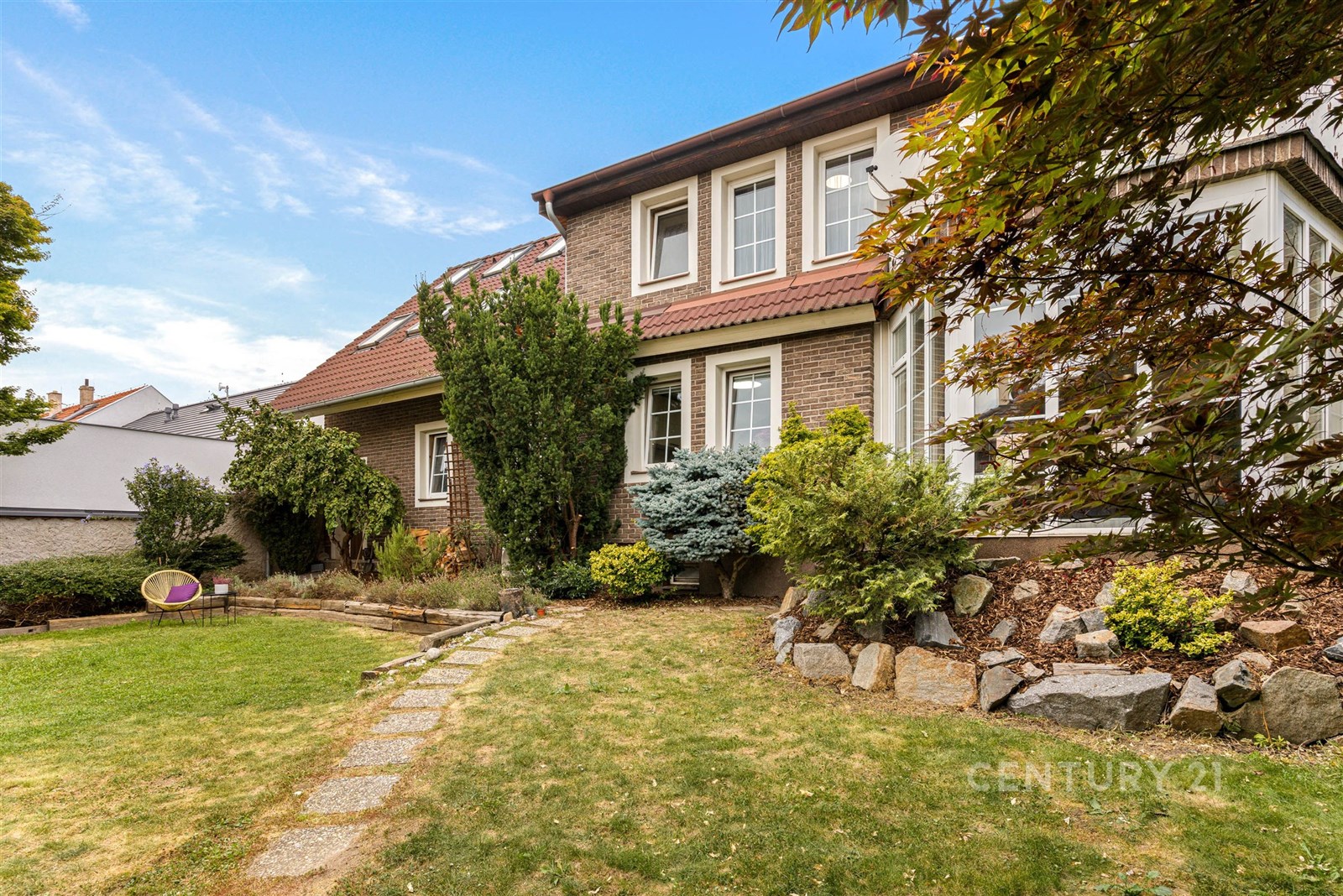 Jsou adresy, kde se ráno spěchá, a pak jsou adresy, kde se můžete nadechnout a nechat den plynout vlastním tempem. Tento dům v nejžádanější čtvrti Slaného patří právě k těm druhým. Na první pohled zaujme svým anglickým stylem, promyšlenou dispozicí 6+kk a téměř 250 m² užitné plochy. Poskytuje dostatek prostoru, který drží rodinu pohromadě, a přitom nabízí každému členovi vlastní soukromí a klid. Po vstupu vás přivítá prostorná chodba, která vás zavede do srdce domu – velkorysé kuchyně pod cihlovým obloukem. Ta je propojená s obývacím pokojem, kde si můžete užívat rodinné večery u plápolajícího krbu. V přízemí nechybí koupelna ani vstup do garáže pro dva vozy. Pokud rádi odpočíváte, jistě oceníte domácí saunu. Skvěle se hodí k tomu, abyste si po dlouhém dni vychutnali sklenku vína z vlastní sklepní vinotéky. V patře na vás čeká pět pokojů, dvě koupelny a útulný půdní koutek. Díky této dispozici je dům ideální nejen pro velkou rodinu, ale i pro ty, kdo potřebují prostornou a plně oddělenou domácí kancelář. Vše doplňují vestavěné skříně a praktické úložné prostory šikovně ukryté v každém rohu. Vzrostlá zahrada orientovaná na jih zaručí dostatek slunce po celý den. Najdete zde místo pro pergolu, zahradní domek a případně i budoucí bazén. Čelakovského ulice leží v nejvyhledávanější klidné čtvrti Slaného, která nabízí kompletní občanskou vybavenost. V docházkové vzdálenosti najdete les, cyklostezky, sportoviště, dětská hřiště, supermarket i restaurace. Do Prahy se dostanete autem za dvacet minut nebo pohodlně pravidelnými autobusovými spoji. Pokud vás tato nabídka oslovila, neváhejte nás kontaktovat. Rádi vám dům ukážeme osobně.