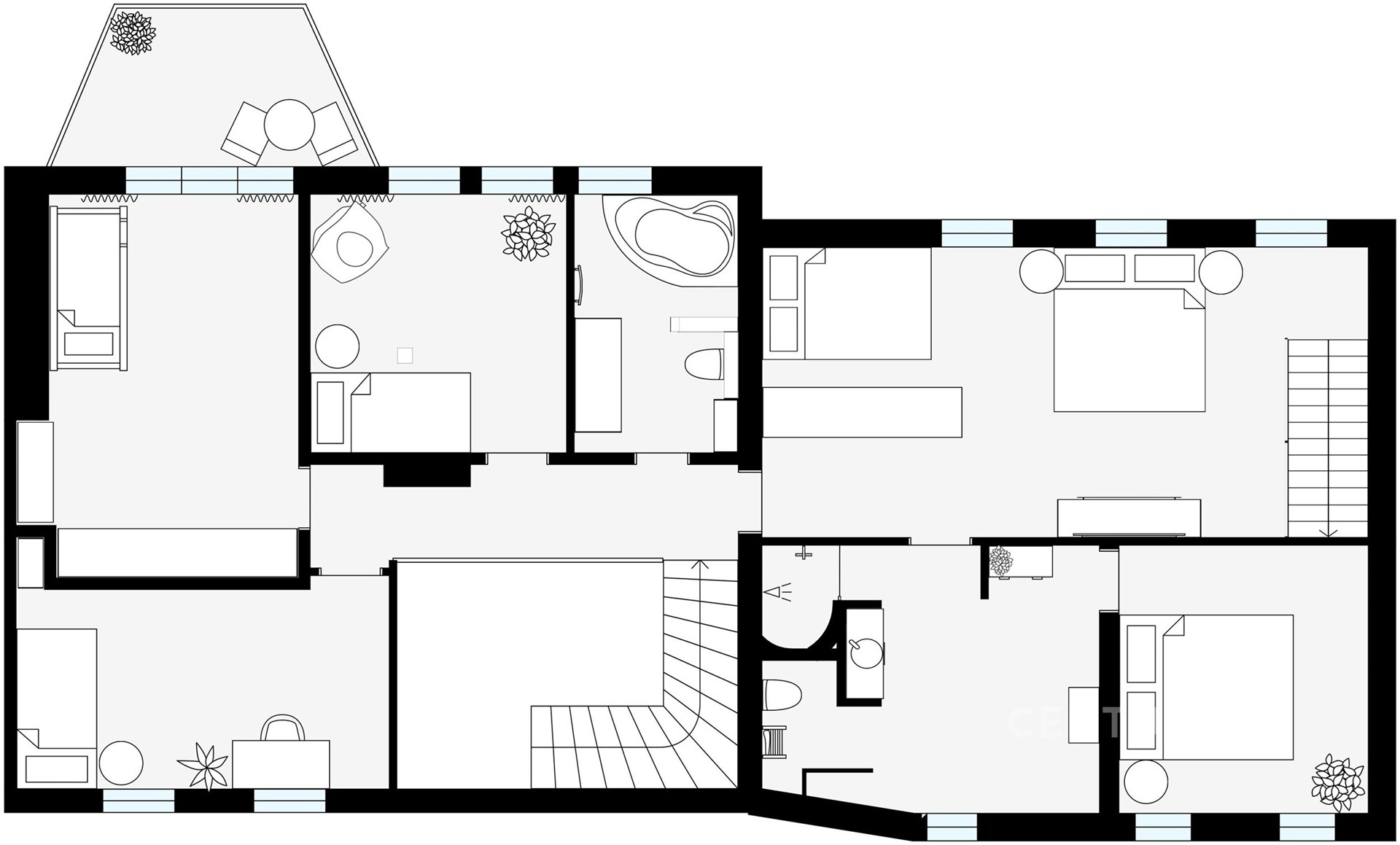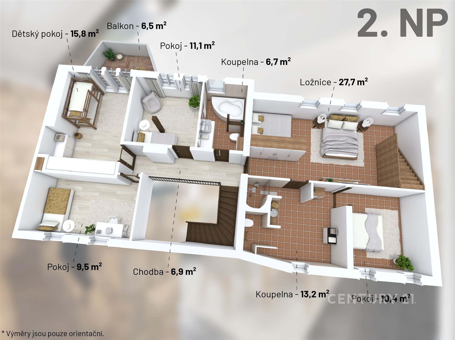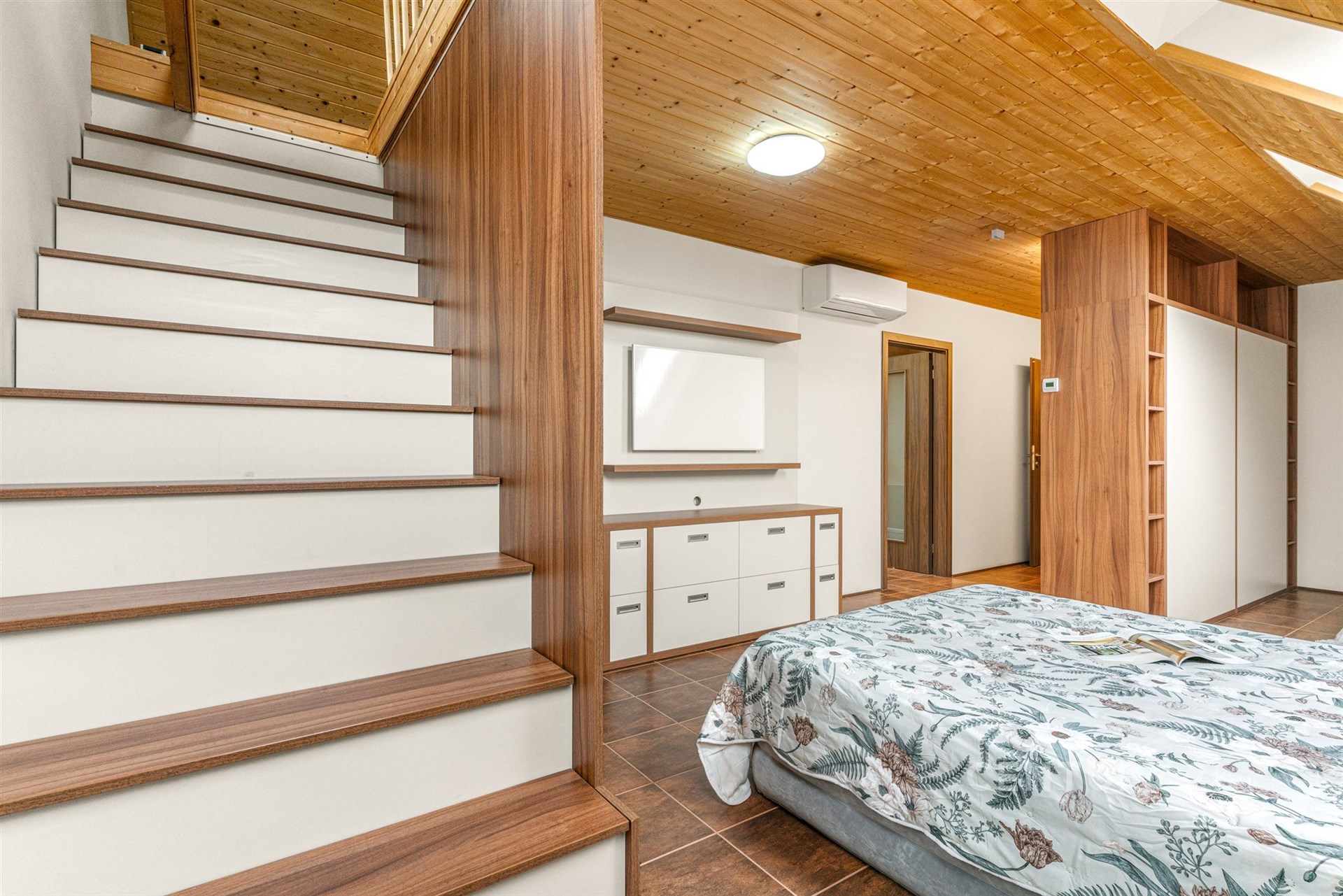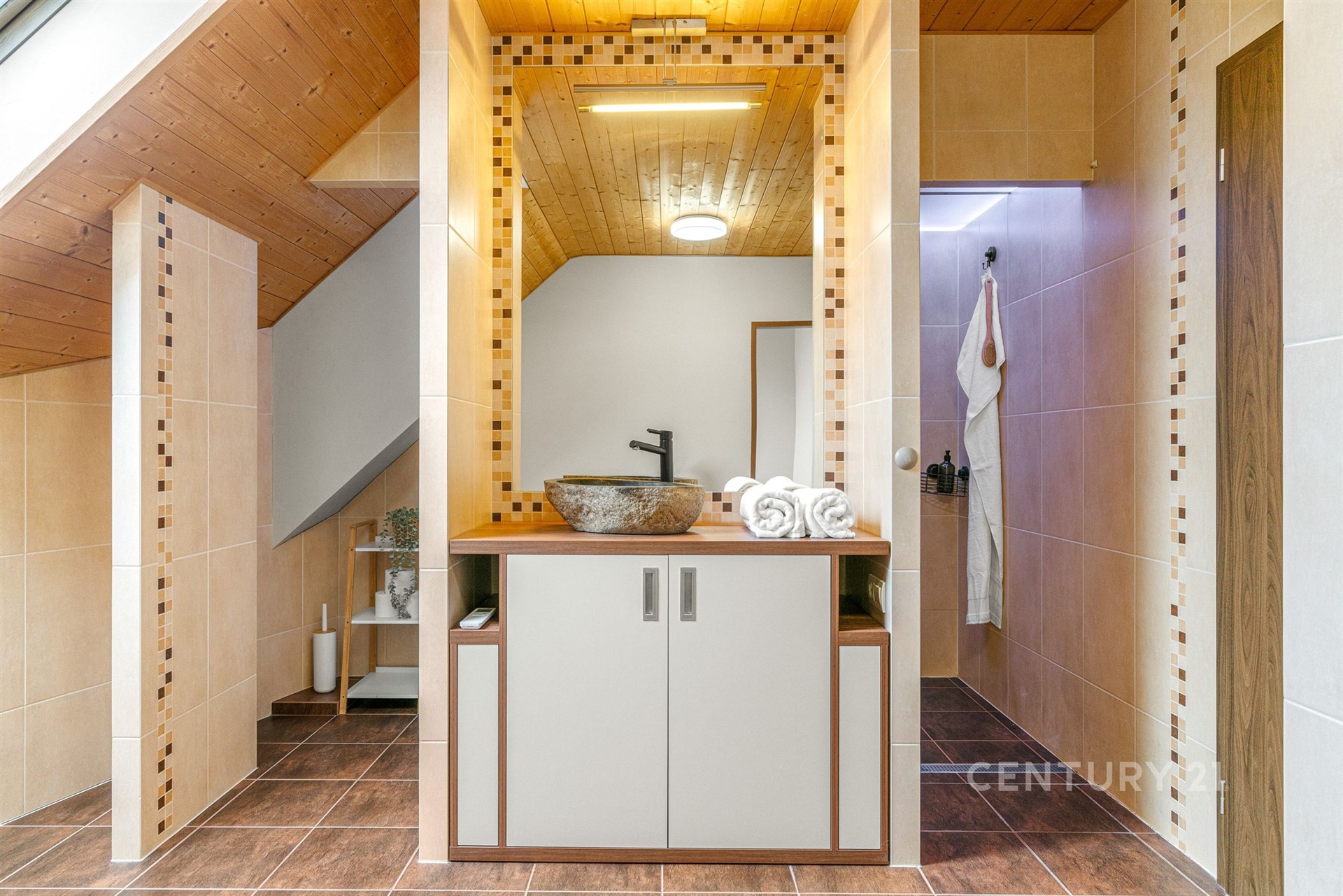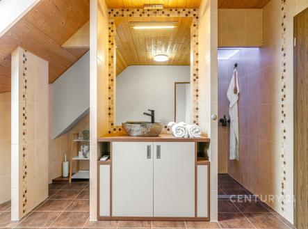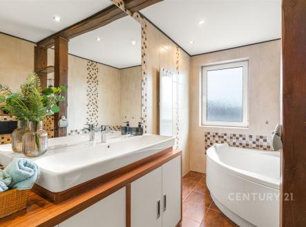 Jsou adresy, kde se ráno spěchá, a pak jsou adresy, kde se můžete nadechnout a nechat den plynout vlastním tempem. Tento dům v nejžádanější čtvrti Slaného patří právě k těm druhým. Na první pohled zaujme svým anglickým stylem, promyšlenou dispozicí 6+kk a téměř 250 m² užitné plochy. Poskytuje dostatek prostoru, který drží rodinu pohromadě, a přitom nabízí každému členovi vlastní soukromí a klid. Po vstupu vás přivítá prostorná chodba, která vás zavede do srdce domu – velkorysé kuchyně pod cihlovým obloukem. Ta je propojená s obývacím pokojem, kde si můžete užívat rodinné večery u plápolajícího krbu. V přízemí nechybí koupelna ani vstup do garáže pro dva vozy. Pokud rádi odpočíváte, jistě oceníte domácí saunu. Skvěle se hodí k tomu, abyste si po dlouhém dni vychutnali sklenku vína z vlastní sklepní vinotéky. V patře na vás čeká pět pokojů, dvě koupelny a útulný půdní koutek. Díky této dispozici je dům ideální nejen pro velkou rodinu, ale i pro ty, kdo potřebují prostornou a plně oddělenou domácí kancelář. Vše doplňují vestavěné skříně a praktické úložné prostory šikovně ukryté v každém rohu. Vzrostlá zahrada orientovaná na jih zaručí dostatek slunce po celý den. Najdete zde místo pro pergolu, zahradní domek a případně i budoucí bazén. Čelakovského ulice leží v nejvyhledávanější klidné čtvrti Slaného, která nabízí kompletní občanskou vybavenost. V docházkové vzdálenosti najdete les, cyklostezky, sportoviště, dětská hřiště, supermarket i restaurace. Do Prahy se dostanete autem za dvacet minut nebo pohodlně pravidelnými autobusovými spoji. Pokud vás tato nabídka oslovila, neváhejte nás kontaktovat. Rádi vám dům ukážeme osobně.