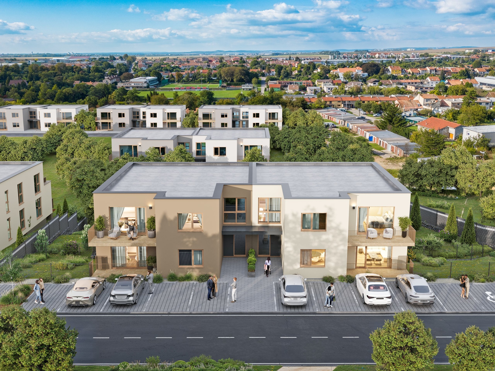 V rámci projektu Nové Šlapanice, který vyrůstá na začátku Šlapanic si Vám dovolujeme představit výjimečné a na danou lokalitu ojedinělé bydlení. Celý projekt je v nadstandartním provedení. Představujeme Vám 3.etapu, která je zaměřena na výstavbu viladomů. Každý viladům má 3 bytové jednotky a ateliér Je to ideální místo pro ty, kteří hledají kvalitní, moderní, prostorné a dispozičně chytře řešené bydlení. V tomto projektu nabízíme k prodeji byt 2+KK s balkonem 5,8m2, zahradou 83,4m2, sklepem 7,7m2 a 1 parkovacím stáním, vše je součástí kupní ceny. Možnost dokoupení dalšího parkovacího stání za 300.000,-Kč První tři kupující v tomto projektu mají BONUS - KUCHYŃSKOU LINKU VČETNĚ VŠECH SPOTŘEBIČŮ Zn. ELECTROLUX V HODNOTĚ 650.000,-Kč ZDARMA. V celém bytě jsou venkovní žaluzie. Viladům 8 na ulici Stanislava Hanzla Byt č.2 je umístěn v 1.NP Dispozice: chodba 7,29m2, obývací pokoj s kuchyňským koutem 37,83m2 s přímým vstupem přes lávku na zahradu 83,4m2 a s balkonem 5,8m2, ložnice 13,36m2, koupelna se sprchovým koutem 3,6m2 a WC zvlášť 1,75m2 a technická místnost 2,75m2. Standarty bytu, které jsou součástí kupní ceny: - podlahy vinyl, keramická dlažba - sanitární technika, sprchový kout, včetně sprchového setu, umyvadlo včetně baterie, vana, závěsné WC, zrcadlo, obklady -mramor - interiérové dveře + obložkové zárubně, vstupní dveře - podlahové vytápění, topné těleso - klimatizace - rekuperace Samotná lokalita nabízí širokou škálu pracovních možností a veškerou potřebnou občanskou vybavenost a výbornou dojezdnost díky dálnici D1 a D2. Také zde v docházkové vzdálenosti nalezneme školu, školku, řadu obchodů, restaurací a služeb, trolejbusovou zastávku, ale především vlakové nádraží, z kterého jste na Hlavním vlakovém nádraží v Brně za 15 min. Dokončení bytů je plánované na 3Q roku 2026. Výhodou je model financování nemovitosti. Pokud by Vás nabídka tohoto či jakéhokoliv jiného bytu v tomto projektu zaujala, kontaktujte prosím makléře, u kterého se dozvíte více. Děláme moderní bydlení dostupnější.