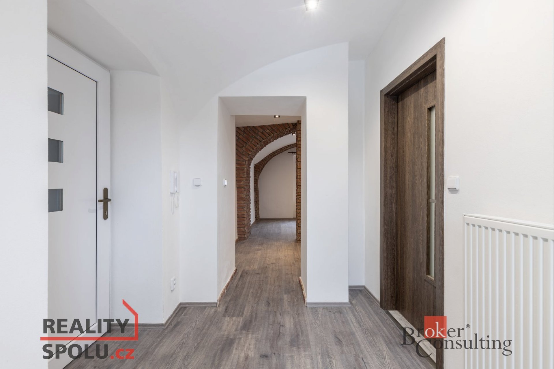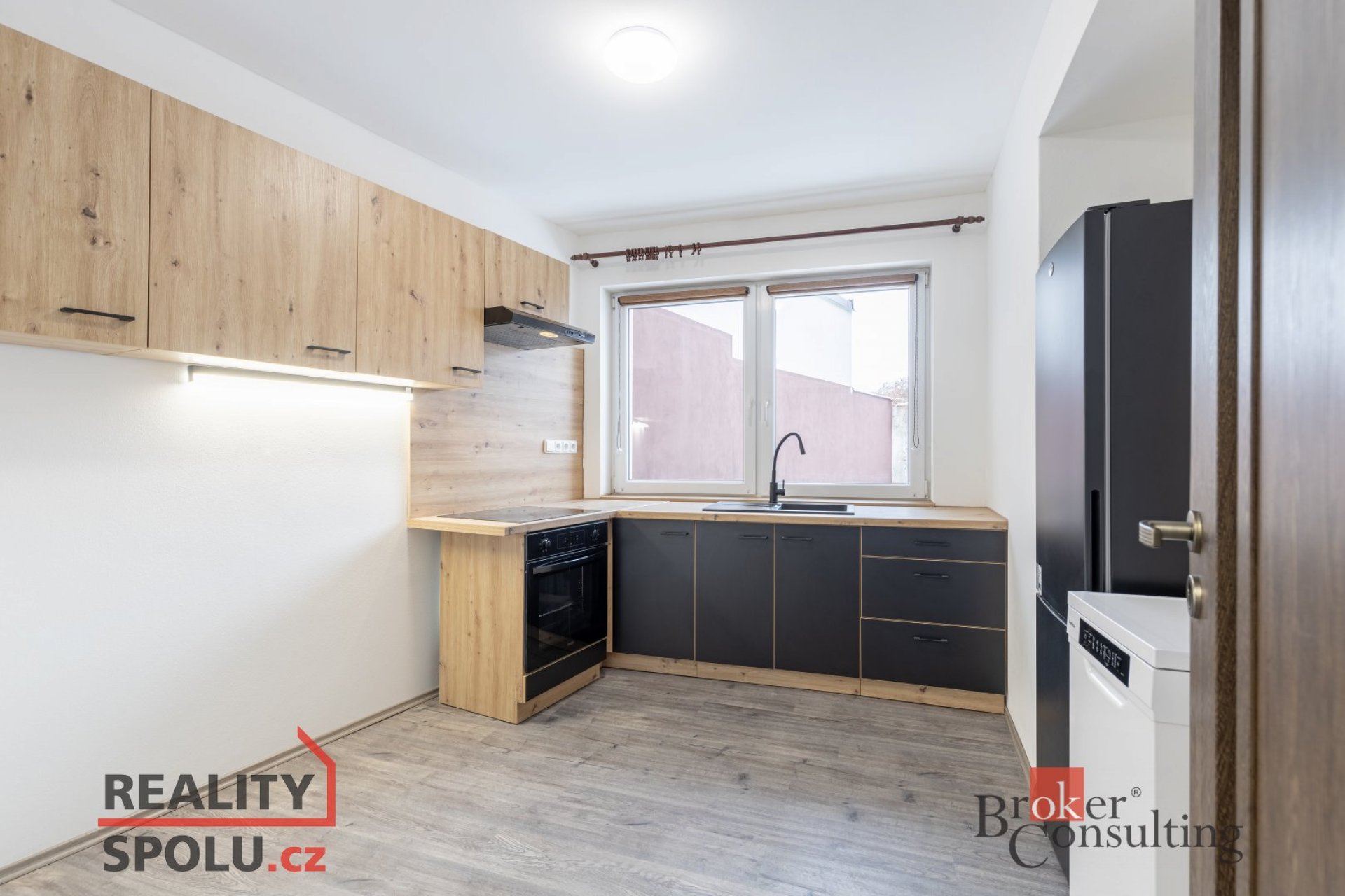 Ve výhradním zastoupení majitele Vám nabízíme k pronájmu zajímavě řešený ateliér 2+1 o výměře 60,8 m² v 1. nadzemním podlaží domu ve Šlapanicích na ulici Brněnská. Součástí tohoto jedinečného ateliéru, čerstvě po kompletní rekonstrukci, je předsíň, obývací pokoj, kuchyně včetně moderních spotřebičů, pokoj nebo pracovna, koupelna se sprchovým koutem a WC. Jistě oceníte velkorysou terasu, která je ideální pro odpočinek i posezení s přáteli. Vytápění bytu zajišťuje vlastní plynový kotel, v koupelně je podlahové topení. Parkování je možné na ulici v blízkosti domu. Cena měsíčního pronájmu je 20 400 Kč + 3 500 Kč záloha na energie a služby. Majitel preferuje dlouhodobý pronájem a požaduje vratnou kauci ve výši dvou měsíčních nájmů. Šlapanice nabízejí ideální kombinaci klidného bydlení v blízkosti přírody a výborné dopravní dostupnosti do Brna. V pěším dosahu budete mít: mateřské a základní školy i gymnázium, ordinace lékařů, supermarket, drogerii, restaurace, širokou škálu služeb a sportovišť. Byt je připraven k nastěhování. V případě zájmu o prohlídku nás neváhejte kontaktovat.