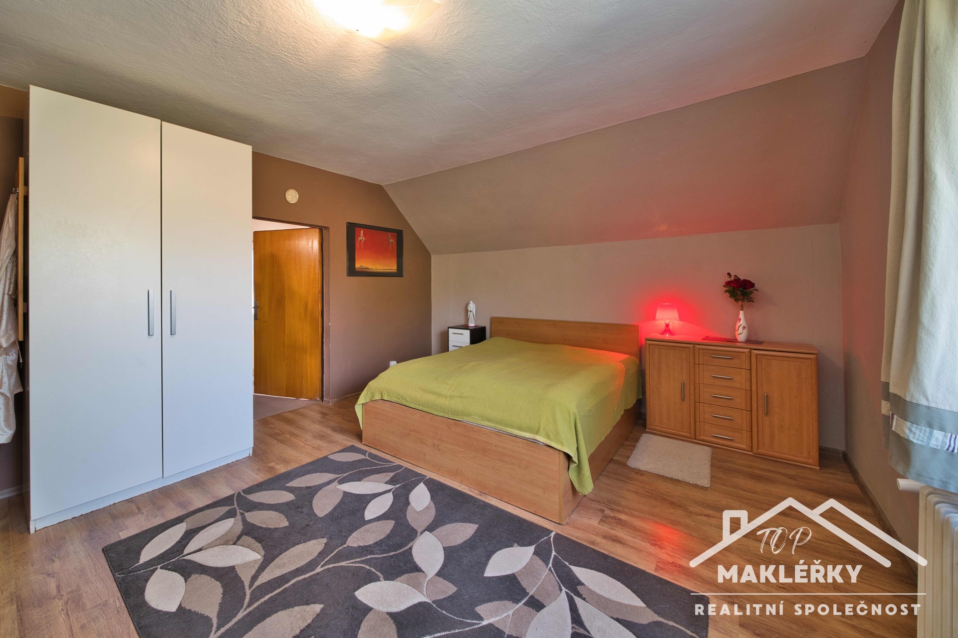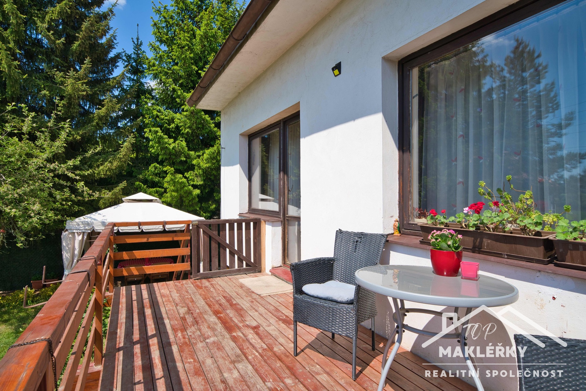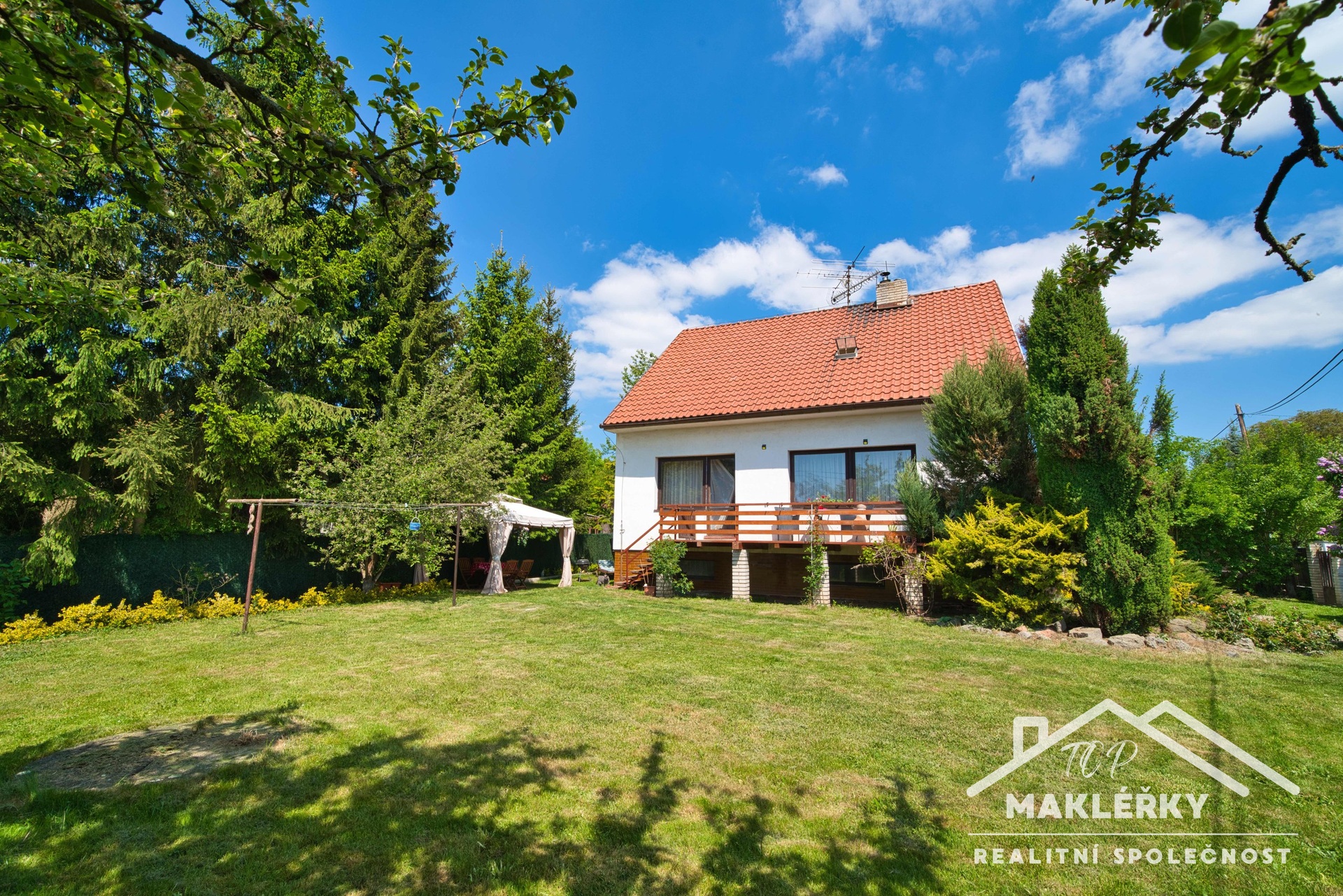 Vážení a milí, nabízím nemovitost, která je situována do intravilánu obce Slapy. Jedná se o patrový, oplocený rodinný dům se zahradou. Vstupujeme do domu po schodech do zvýšeného přízemí, do chodby s dřevěným obložením. Odsud vedou dvoje prosklenné dveře. Jedny do přízemní obytné části a druhé do prvního patra. V přízemí procházíme chodbou, která se větví na vstupy do WC, koupelny ve tvaru L (vana, vyšší strop, umyvadlo, topení a prostor pro pračku). Dalším prostorem je kuchyň se spíží a zde již byla dělána nová elektřina. Kuchyňská linka také novější. Vstup do této místnosti je bez dveří. Vlevo je neprůchozí pokoj a rovně pokoj obývací. Je to velká místnost s výstupem na dřevěnou terasu. Podlahy jsou tvořeny plovoucí podlahou. Do patra vedou schody s kobercovým povrchem a to i vrchní chodba. V patře dřevěná zábrana. Čtvery dveře - jedny do úložného podkrovního prostoru - světlík, další pokoje jsou ložnice, dětský pokoj, koupelna (sprchový kout, umyvadlo, WC, okno). V pokojích přiznaný zkos střechy. Nemovitost využívá obecní vodovod a kanalizaci. Studna je na pozemku také, ale je nevyužívaná. Plyn zde není. Topení kotlem na peletky ve sklepě. Sklepní část má vstup po betonových schodech a nebo garážovými vraty. Je prostorná a nabízí 2x místnost na uskladnění potravin, místnost na kotel, garáž. Nemovitost má dva komíny, jeden vyvložkovaný kvůli kotli na peletky. Střecha z tašek v dobrém stavu. Stav je dobrý. Disponujeme s aktuální inspekční zprávou od odborníka, který udává stav nemovitosti a je k dispozici. V okolí je možnost koupání, turistiky, rybaření, vodních sportů, jachtingu. Dopravní spojení PID směr Praha - Smíchovské nádraží je 40 min, autem asi 30 min jízdy. Příjezdová cesta je např. i podél malebné Vltavy. Případné financování nemovitosti vám pomohu zařídit. Majitel si v případě více zájemců vybere dle vlastních kritérií.