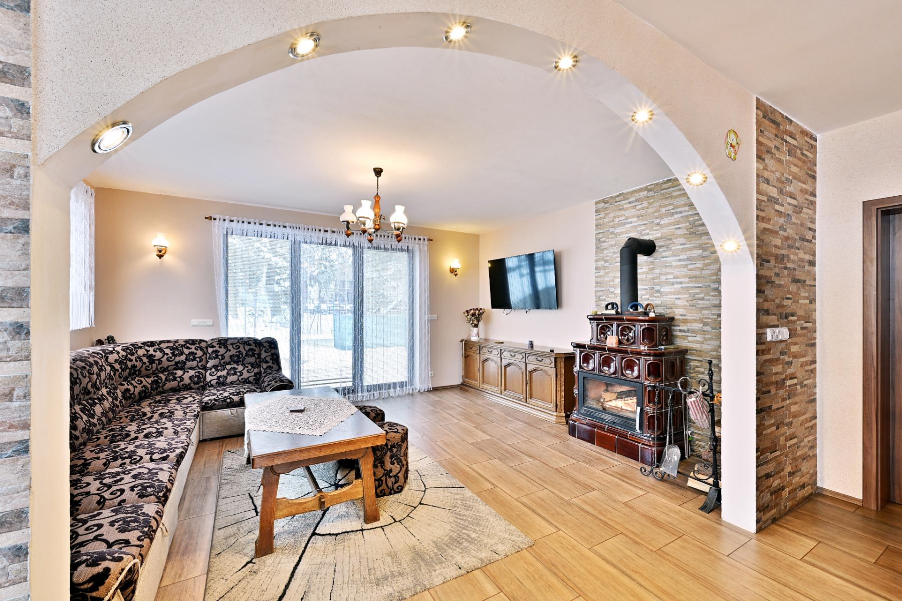 Tato nemovitost není běžným rodinným domem. Jedná se o reprezentativní dům s nadstandardním zázemím, který nabízí výjimečné propojení luxusního bydlení, absolutního soukromí a plnohodnotného prostoru pro podnikání vše v klidné lokalitě s vynikající dostupností do Prahy i okolních měst. Dům se nachází v obci Slatina, pouhých 22 km od Prahy, s rychlým dojezdem do Kladna, Slaného i Kralup nad Vltavou (do 15 minut). Lokalita nabízí klid venkova při zachování plné dostupnosti městských služeb. Nemovitost je dispozičně řešena jako 6+kk s obytnou plochou 163 m a byla navržena s důrazem na reprezentativnost, funkčnost a dlouhodobou hodnotu. Již vstupní část domu působí velkoryse prostorné zádveří se šatnou přirozeně odděluje soukromou a provozní část domu. Součástí přízemí je samostatný komerční prostor s vlastní toaletou, ideální pro kancelář, studio, ordinaci, showroom či jiné podnikání, které vyžaduje oddělení od soukromého bydlení. Tento prvek činí dům výjimečným a výrazně rozšiřuje možnosti jeho využití. Dominantou domu je reprezentativní obývací prostor s designovými kachlovými kamny značky ABX, která plní nejen estetickou, ale i funkční roli. Obývací pokoj je plynule propojen s kuchyní a tvoří přirozené centrum domu pro rodinný i společenský život. V patře se nachází tři ložnice, pracovna a koupelna s rohovou vanou, které poskytují maximální komfort a soukromí. Dispozice umožňuje flexibilní využití dle životního stylu nového majitele rodinné bydlení, home office i reprezentativní zázemí. Technické řešení domu bylo navrženo s cílem zajistit nízké provozní náklady a dlouhodobou udržitelnost. Podlahové vytápění je instalováno v celém domě s výjimkou jedné ložnice. V této ložnici a v koupelnách jsou umístěna topná tělesa (žebříky), která jsou napojena přes výměník na kachlová kamna ABX, což výrazně snižuje náklady na vytápění a zvyšuje energetickou efektivitu domu. Pozemek o výměře 777 m nabízí maximální míru soukromí. Součástí je krytý bazén, venkovní pergola a dostatek místa pro parkování několika vozů.. Exteriér domu byl kompletně navržen a realizován v roce 2024 zahrada, pergola, výsadba zeleně, okrasné skalky i nová zámková dlažba tvoří harmonický celek bez nutnosti dalších investic. Velkým benefitem je občanská vybavenost přímo v obci Slatina mateřská škola a základní škola do 4. třídy. Další služby jsou dostupné v bezprostředním okolí. Tato nemovitost je určena pro náročného klienta, který hledá více než standardní bydlení hledá prostor, klid, reprezentaci a možnost spojit soukromý život s profesním zázemím bez kompromisů.