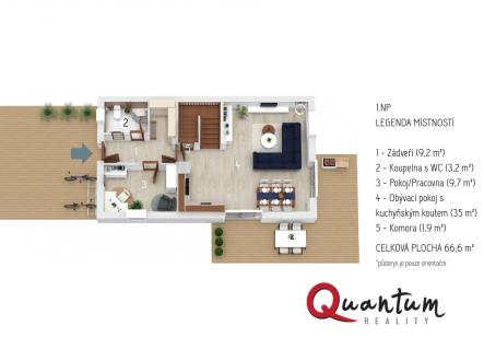 Elegantní rodinné bydlení v anglickém stylu v klidné lokalitě nedaleko Prahy Exkluzivně nabízíme ke koupi rohový řadový dům v anglickém stylu, situovaný v malebné obci Slatina, která představuje ideální kompromis mezi klidným rodinným zázemím a vynikající dopravní dostupností do Prahy, Kladna i Kralup nad Vltavou. Tato pečlivě udržovaná nemovitost o dispozici 5+kk nabízí komfortní užitnou plochu 129 m² a je připravena k okamžitému nastěhování. Dispoziční řešení: Přízemí: prostorný a prosvětlený obývací pokoj propojený s moderním kuchyňským koutem a přímým vstupem na soukromou zahradu (35 m²), která poskytuje příjemné místo pro relaxaci i rodinné chvíle ložnice (9,7 m²) vhodná např. jako pracovna či pokoj pro hosty koupelna se sprchovým koutem a toaletou (3,2 m²) prostorné zádveří (9,2 m²) praktická komora pod schodištěm (1,9 m²) Patro: tři komfortní ložnice (13,7 m², 14,6 m² a 16,2 m²) s dostatkem prostoru pro každého člena domácnosti elegantní koupelna s rohovou vanou a toaletou (7,9 m²) centrální chodba (4,4 m²) Vytápění je zajištěno úsporným plynovým kotlem. Před domem jsou k dispozici dvě zastřešená parkovací stání, která podtrhují vysoký uživatelský komfort této nemovitosti. Lokalita a občanská vybavenost: Obec Slatina je vyhledávanou lokalitou pro klidné rodinné bydlení s kompletní základní občanskou vybaveností — mateřská a základní škola, obchod COOP, obecní úřad, autobusová doprava na trase Velvary – Kladno. Výborná dopravní dostupnost umožňuje rychlé spojení: Praha cca 20 minut (D7) Kladno cca 15 minut Kralupy nad Vltavou cca 15 minut Tato nemovitost představuje atraktivní nabídku pro klienty, kteří hledají kvalitní rodinné bydlení v klidném prostředí, s výborným zázemím a snadnou dostupností metropole.