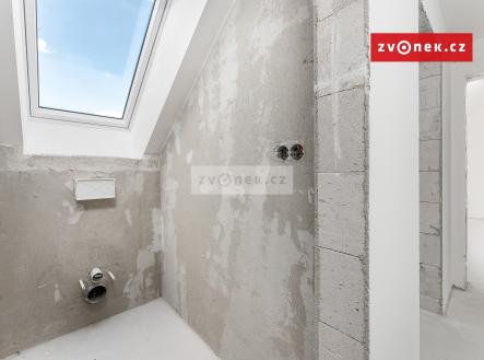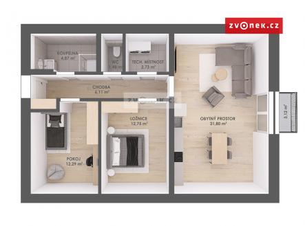 Nabízíme k prodeji exkluzivní byt 3+kk s balkonem, samostatnou zahradou, parkovacím stáním a sklepem, situovaný v krásné a klidné lokalitě ve Slavičíně, ul. Obchodní. Byt se nachází v koncové části ulice, zajišťující maximální soukromí a nádherný výhled na okolní přírodu. Je umístěn ve 2. patře novostavby s pouhými třemi bytovými jednotkami. Dispozice bytu zahrnuje prostornou vstupní chodbu, dva samostatné pokoje, obývací pokoj s kuchyňským koutem a přímým vstupem na balkon, koupelnu, samostatné WC a technickou místnost. K bytu náleží prostorný sklep (7,5 m²) v suterénu a vlastní parkovací stání přímo u domu. Součástí je také oplocená zahrada o velikosti 121 m², vyhrazená výhradně pro tento byt. Zahradu můžete využít dle vlastního přání – ať už k relaxaci, stavbě pergoly, hernímu prostoru pro děti nebo pěstování rostlin. Byt je vybudován ve vysokém standardu a splňuje požadavky na energetickou úspornost (energetická třída A). Vytápění zajišťuje tepelné čerpadlo vzduch-voda, větrání je řešeno samostatnou rekuperační jednotkou. Ohřev teplé vody probíhá za pomoci solárních termických kolektorů a tepelného čerpadla. Dokončení bytu bude provedeno ve vysokém standardu s možností individuálního výběru zařizovacích prvků dle přání klienta (cena dokončení ve standardu činí 250.000 Kč). Vizualizace v nabídce jsou ilustrativní. Tento nadstandardní byt doporučujeme nejen pro trvalé bydlení, ale i jako ideální rekreační nemovitost v srdci valašské přírody (například luhačovická přehrada je vzdálena pouhých 10 minut jízdy). Neváhejte a domluvte si prohlídku tohoto jedinečného bytu!
