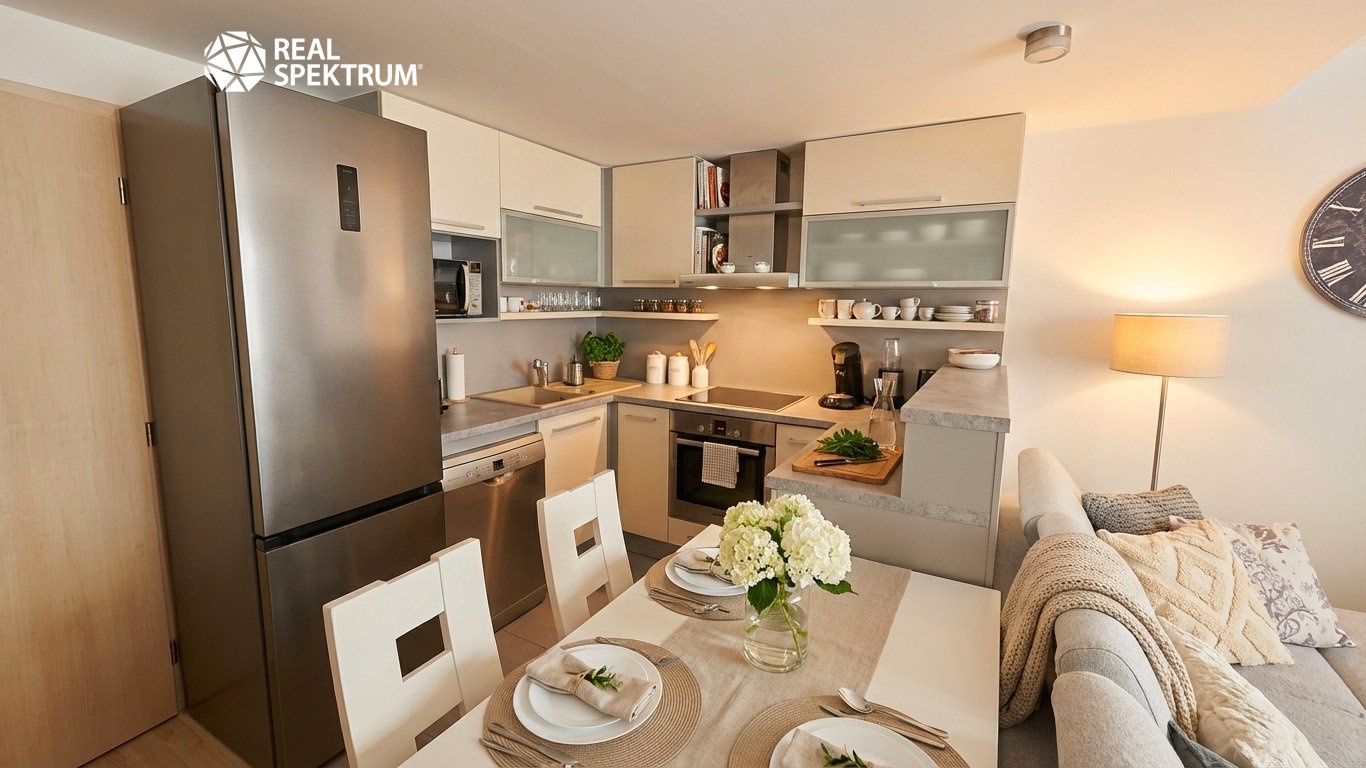 Prodej krásného mezonetového bytu 3+kk s vyhrazeným parkovacím stáním v širším centru Slavkova. Byt působí velmi útulně a je ve výborném technickém stavu. Nachází se v moderním cihlovém domě, který splňuje veškeré nároky současného bydlení. Velkou předností bytu je balkon a především prostorná terasa s příjemným výhledem, která nabízí ideální místo pro relaxaci. Dispozičně byt nabízí vstupní chodbu, obývací pokoj s kuchyňským koutem vybaveným moderní kuchyňskou linkou, dvě ložnice, koupelnu, samostatné WC a sklep. Samozřejmostí je dostatek úložných prostor. Vytápění zajišťuje vlastní zánovní plynový kotel, který přispívá k nízkým provozním nákladům. K bytu náleží také prostorná, odvětrávaná sklepní místnost. Společenství vlastníků jednotek není zatíženo žádným úvěrem, což se pozitivně odráží v nízkých měsíčních nákladech a umožňuje bezproblémové převzetí nemovitosti. Po dohodě je možné převzít spolehlivého nájemníka s platnou nájemní smlouvou na dobu určitou, což činí byt zajímavou volbou i jako investici. Doporučujeme osobní prohlídku. Dispozice: velikost: 3+kk celková výměra bytu: 83,5 m² vč. příslušenství; výměra pokojů: 22,9 m², 17,9 m², 10,5 m², koupelna: 4,4 m², WC: 1,7 m², hala: 4,8 m², balkon: 5,6 m², terasa: 9,7 m², sklep: 4,3 m²; konstrukce: cihlová; vlastnictví: osobní; okna: euro; podlaží: 3/3; podlahy: plovoucí, dlažba; orientace: S, V; nastěhování: dohodou; náklady na bydlení: 1.992,- Kč/měsíc + elektřina a plyn;