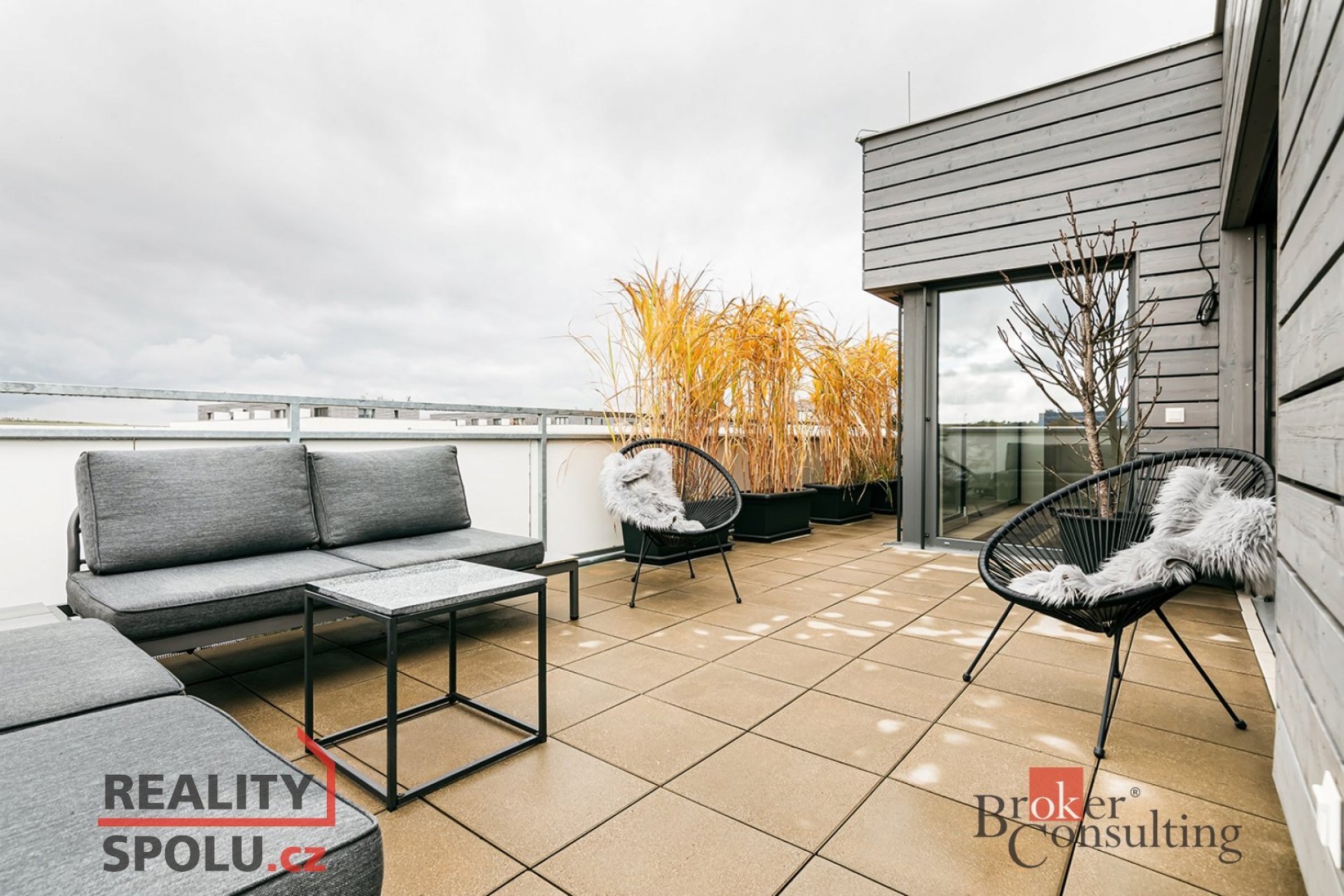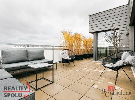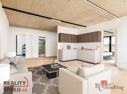 Designová novostavba na míru v klidné lokalitě – Rezidence Austerlitz Hledáte domov, který má styl, prostor a promyšlený detail v každém rohu? Tento jedinečný byt zkolaudovaný v roce 2022 byl vytvořen na míru s důrazem na komfort, kvalitu a moderní design. Užitná plocha bytu činí 96 m2. Celý byt je řešen prostornou dispozicí s industriálními stropy a perfektně prosvětleným interiérem. Západy slunce v tomto bytě opravdu stojí za to! Okolo celého bytu je terasa o velikosti 44 m2, každý pokoj má tak svůj vlastní přístup. Na terase je zavedená voda a je zde i předpříprava pro markýzu. Malý pokoj je možné využít také jako technickou místnost, je zde připravená přípojka na pračku i sušičku. Čím Vás tento byt může ještě oslnit? Například koupelnou snů s luxusními prvky, kde je vana vyrobená na míru a sprchový kout. Prostor pro kuchyň čeká na přání a představy prvního majitele při zařizování kuchyňské linky. V chodbě a prostoru pro obývací pokoj se nachází liniová a magnetická světla s dálkovým ovladačem a nastavitelnými odstíny. Stěna obývacího pokoje má protihlukový nástřik, nemusíte se tedy trápit s hlukem od sousedů. Každé okno v bytě má své vlastní elektrické žaluzie. Celý byt dále disponuje dřevěnou podlahou která dodává bytu útulný pocit. U vstupních dveří do bytu je zvonek s kamerou pro lepší přehlednost a bezpečí. K bytu také náleží společná kolárna a vlastní sklepní prostory. Budova má také vlastní kotelnu. K bytu lze přikoupit parkovací stání venkovní nebo garážové. Byt se nachází v klidné rezidenční oblasti Rezidence Austerlitz, v sousedství chráněného území – močál s ochranným pásmem CHKO, kde se nesmí stavět. Díky tomu máte zaručený nerušený klid. Tento byt není jen místo k bydlení – je to životní styl. Pokud by Vás naše nabídka zaujala, neváhejte nás kontaktovat. S financováním si nelámejte hlavu, realitní specialista je i profík na financování a rád s Vámi probere možnosti. Těšíme se na Vás! Broker Consulting - Finance. Reality. Spolu.