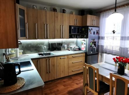 Exkluzivně nabízíme byt 4+1 na sídlišti ve Slavonicích o celkové ploše 116 m2 a užitné 108 m2. Byt se nachází ve zvýšeném přízemí cihlového domu o celkovém počtu 9 bytů v domě. Bytová jednotka je složena z předsíně a chodby, kuchyně, obývacího pokoje, dětského pokoje, ložnice, jednoho dalšího pokoje a dvou lodžií. Byt je situován směrem na jih a sever. Každá z lodžií je situována na jinou světovou stranu, tudíž s dostatkem světla a sluníčka po celý den. Celý byt včetně koupelny a samostatného WC prošel před dvěma lety kompletní rekonstrukcí. Kuchyň byla zrekonstruována před pěti lety. Asi před deseti lety byla provedena výměna původních dřevěných oken za plastová. K bytu náleží vlastní veliký zděný sklep a samostatná malá půda. Možnost využívat společné prostory jako jsou např. sušárna, kolárna apod. Vytápění řešeno ústředním topením se společným plynovým kotlem. Dům je napojen na obecní kanalizaci. Voda využívána z veřejného vodovodu. V letošním roce je naplánována celková revitalizace domu spočívající v zateplení pláště domu, tepelná izolace střechy a výměna střešní krytiny. V těsné blízkosti domu se nachází samoobsluha s potravinami a smíšeným zbožím, škola, školka, zdravotní středisko, dětské hřiště atd. Přímo u domu možnost parkování pro 7 vozidel. Město Slavonice disponuje kompletní občanskou vybaveností. Slavonice jsou jedinečnou historickou a architektonickou památkou nacházející se na pomezí Čech, Moravy a Rakouska, v samém srdci České Kanady. Jen 13 km se nachází město Dačice, obec s rozšířenou působností.