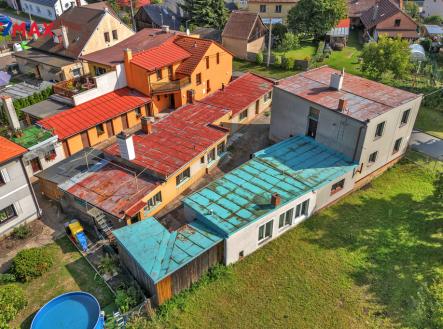 Nabízím k prodeji soubor DVOU RODINNÝCH DOMŮ se společným nádvořím, nacházejících se v obci Smidary. Oba domy jsou napojeny na elektřinu a plynovod. Voda je ze studny přes vodárnu. Vytápění zajišťuje plynový kotel. Celková užitná plocha obytných částí činí přibližně 217 m², navíc jsou k užitné ploše k dispozici sklepy (2 × 13 m²) a tři garáže (30 m², 36 m² a 33 m²). Celý areál leží na pozemku o rozloze 522 m². Rodinný dům čp. 245 (dvougenerační, 2 NP, částečně podsklepen) 1. nadzemní podlaží: kuchyň se spíží, obývací pokoj, koupelna, samostatné WC a chodba. 2. nadzemní podlaží: kuchyň (bez linky, ale s rozvody), ložnice, pokoj, koupelna, balkon 3 m² spíž, šatna a chodba. Sklep: 13 m². Dům je vhodný pro dvougenerační bydlení nebo k rozdělení na dvě samostatné bytové jednotky. Rodinný dům čp. 317 (1 NP, částečně podsklepen) Dispozice: ložnice, obývací pokoj, koupelna, samostatné WC, chodba, pokoj, spíž, technická místnost a zádveří. Sklep: 13 m². Součástí domu je také garáž v přední části směrem do ulice. V zahradě se nacházejí další dvě zděné garáže (30 m² a 36 m² - do jedné garáže se vejdou dvě auta), které poskytují dostatek prostoru pro parkování nebo dílenské využití. Domy jsou určeny k rekonstrukci. Využití nemovitosti: vícegenerační bydlení, investiční příležitost – pronájem pro více nájemníků. Obec Smidary nabízí základní občanskou vybavenost – školu, školku, obchod, restauraci, poštu i základní zdravotní služby. Kompletní služby jsou k dispozici v nedalekém Novém Bydžově (cca 5 km). Nový Bydžov – 5 km Jičín - 20 km Hradec Králové – 30 km Nájezd na dálnici D11 - 24 km Nájezd na dálnici D35 (zprovozněna v prosinci 2025) - 15 km Praha (Černý Most) – 80 km (přibližně 55 minut po dálnici D11) Rád Vám poskytnu veškeré doplňující informace a v případě zájmu mohu pomoci i s řešením nejvýhodnějšího financování.