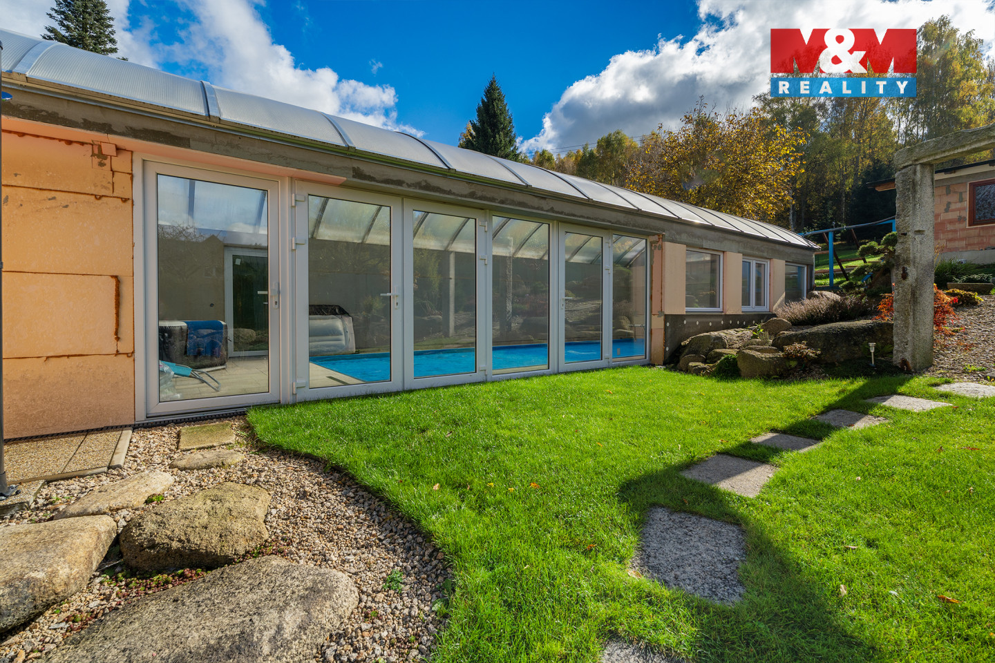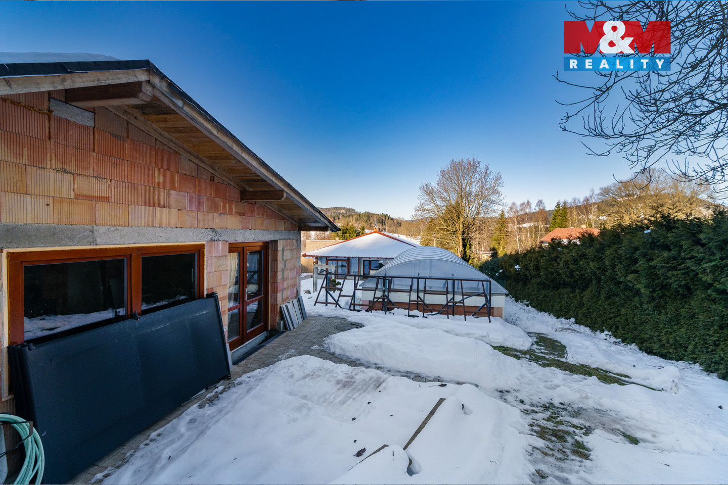 Exkluzivní novostavba rodinného domu ve Smržovce, na jedinečném místě nabízí užitnou plochu 182,77 m² a pozemek 1 592 m² s jihovýchodní orientací zahrady. Dům je TĚSNĚ PŘED DOKONČENÍM, je možnost úprav dle vlastních představ s přípravou na fotovoltaiku. V suterénu se nachází chodba, pokoj pro hosty, prádelna se sušárnou, šatna, sklep, úklidová místnost s WC, koupelna a technická místnost s tepelným čerpadlem, akumulační nádrží 750 l, bojlerem 250 l, elektroinstalací, zabezpečením a kamerovým systémem, vytápěná garáž až pro tři auta. V přízemí 5+kk se zimní zahradou – obývací pokoj s kuchyní a krbem s výměníkem, ložnice, 2 pokoje, pracovna, koupelna s vanou i sprchou, samostatné WC a podlahové topení s oddělenými okruhy. Na pozemku pak krytý bazén délky 10 m s relaxační zónou, dvě terasy, zahradní domek s letní kuchyní, přípravu na saunu a sprchu, vodu ze studny kopané i vrtané, okrasnou zahradu, zámkovou dlažbu, kryté parkování. Dům je vhodný pro větší nebo dvougenerační rodinu.