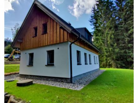 Nabízíme stylový horský dům s garáží a krytou terasou na krásném pozemku s lesním potokem.Dispozice 4+kk, 2 x koupelna. Objekt má přípojku elektřiny, vodovodu, kanalizace, TV, SAT, INT. Kolaudace proběhne ve 4.kv.2025. Obvodové zdivo Heluz 2in1s polystyrenovou výplní. Pohledový trámový strop. Vázaný pohledový krov z KVH hranolů s nadkrokevní PIR izolací a palubkovým záklopem. Dubové schodiště. Vnější dveře a okna Rehau s trojsklem. Hliníková střešní krytina Prefa. Teplovodní podlahové topení. Krbový modul Schiedel Kingfire Parat. Bezklíčové otevírání vstupních dveří a garážových vrat, zabezpečovací systém, domovní telefon. Chytrá domácnost přes mobilní telefon. Fasádní prvky z modřínového dřeva a přírodní žuly. Objekt je momentálně ve fázi dokončených podlah, omítek a přípravy pro kuchyňskou linku. Stavba je nabízena ve fázi Shell & Core. Krásný pozemek s potokem o rozloze 1000 M2 leží na úbočí Bukové hory v lokalitě zdejší CHKO. Město Smržovka je právem označováno jako vstupní brána Jizerských hor. Sportovní středisko Tanvaldský Špičák je v dojezdu 5 min., středisko Bedřichov v dojezdu 15 min., město Liberec v dojezdu 20 min.