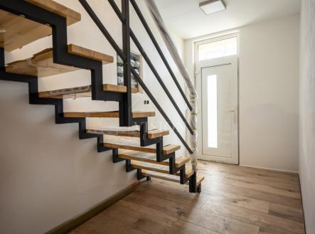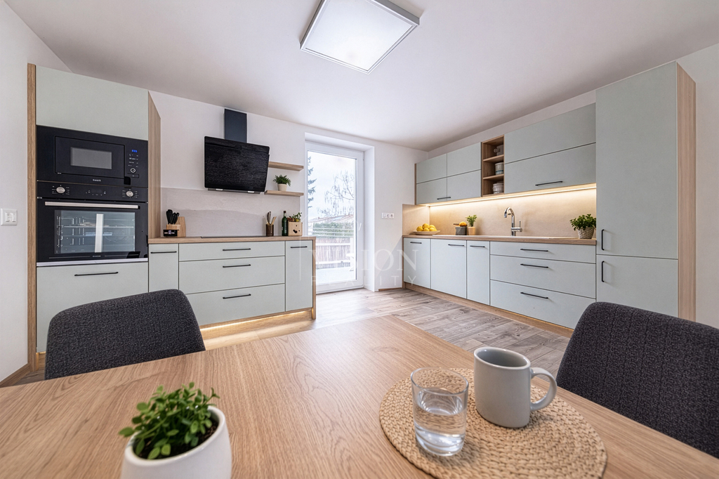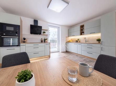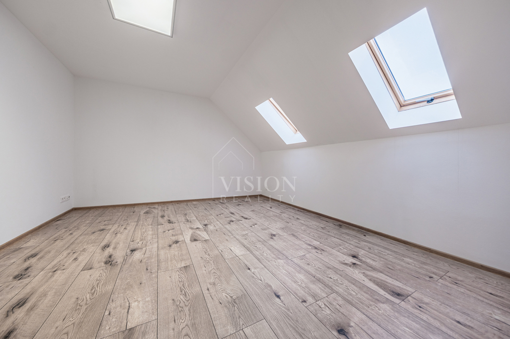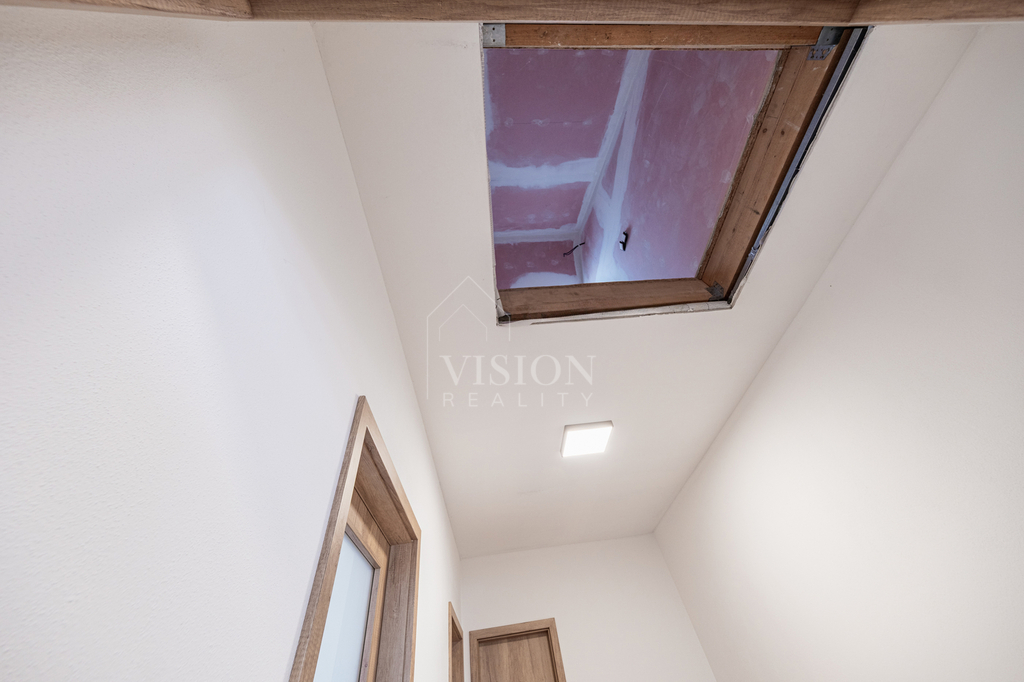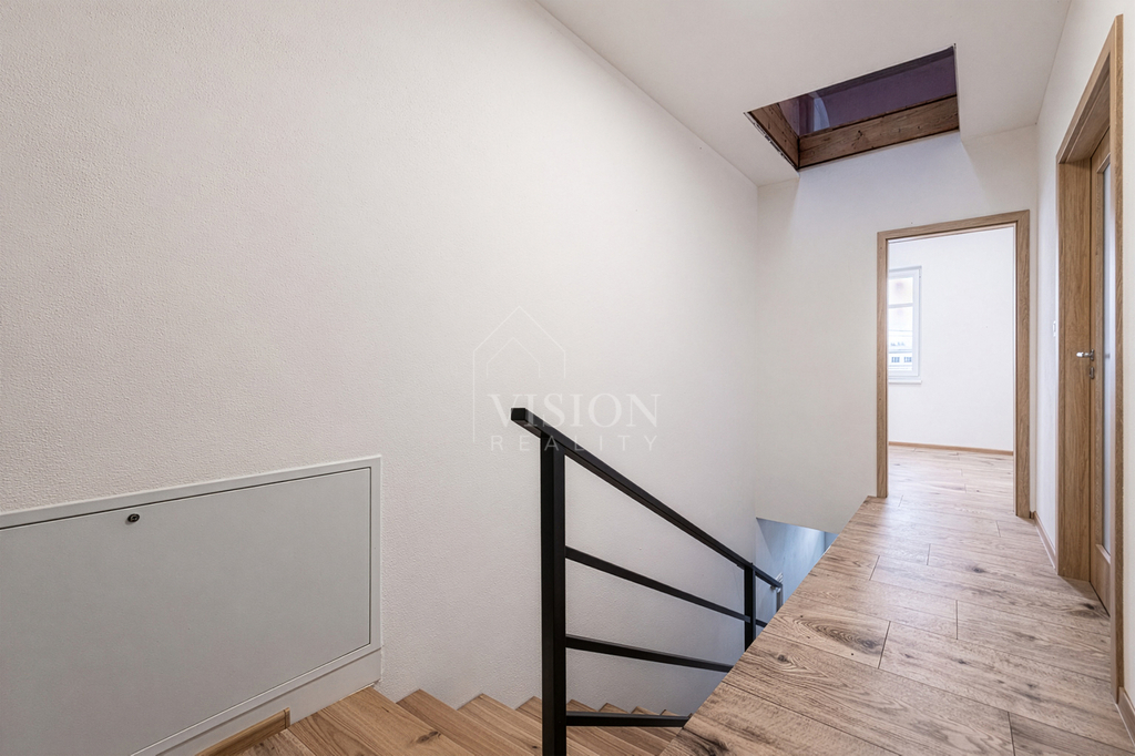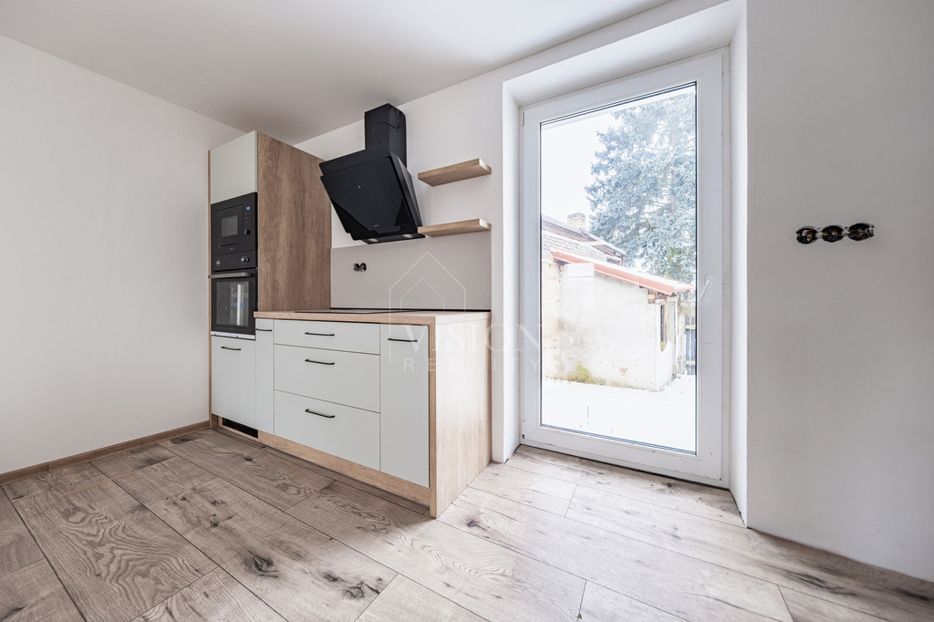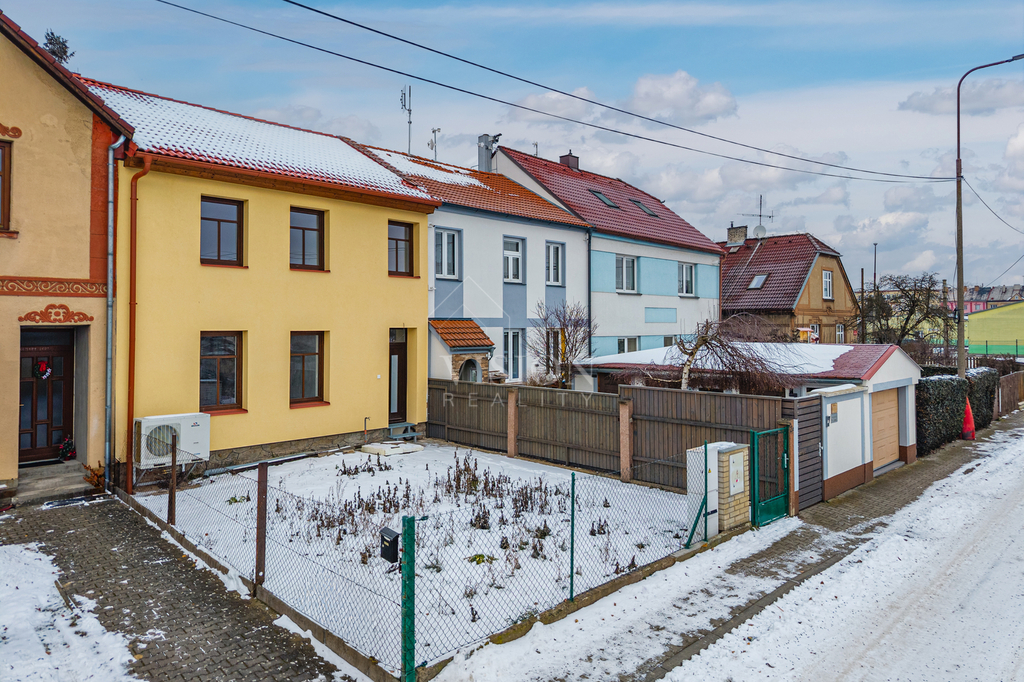 Prodej řadového rodinného domu po kompletní rekonstrukci, s obytnou plocha 116 m2. V suterénu je sklepní prostor 18 m2, přístupný ze zadního dvorku, v přízemí - vstupní chodba, obývací pokoj s kuchyní, jídelním koutem a vstupem na zadní dvorek, kde je malý skládek na nářadí s možností vybudování pergoly. V koupelně je sprchový kout, WC je samostatně. V prvním patře jsou 2 ložnice, malá pracovna nebo šatna a druhá koupelna se sprchovým koutem včetně WC. V podkroví je nečleněný zateplený prostor s možností využívání skladového prostoru. Jeho plocha je 26 m2. Do tohoto prostoru lze dokončit přístup dle potřeb nového majitele. Dům prošel kompletní a zdařilou rekonstrukcí, zůstaly pouze zděné konstrukce obvodových stěn a část prvků krovu. Dům je zateplen, okna jsou plastová, střešní okna dřevěná, podlahy vinyl a dlažba. Topení je řešeno tepelným čerpadlem voda vzduch a je podlahové. V obývacím prostoru je možnost umístění krbových kamen. Ohřev TUV je bojlerem. Dům je zařízen kuchyňskou linkou se spotřebiči, prostor pod schody může být dokončen dle přání nového majitele. Objekt je napojen na elektřinu, kanalizaci, vodovod a má vlastní studnu. Před domem je předzahrádka, která lze také upravit i na parkování. V případě zájmu o prohlídku volejte makléře.