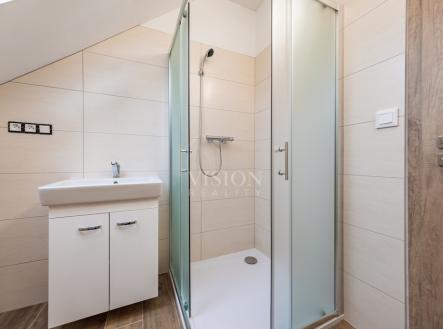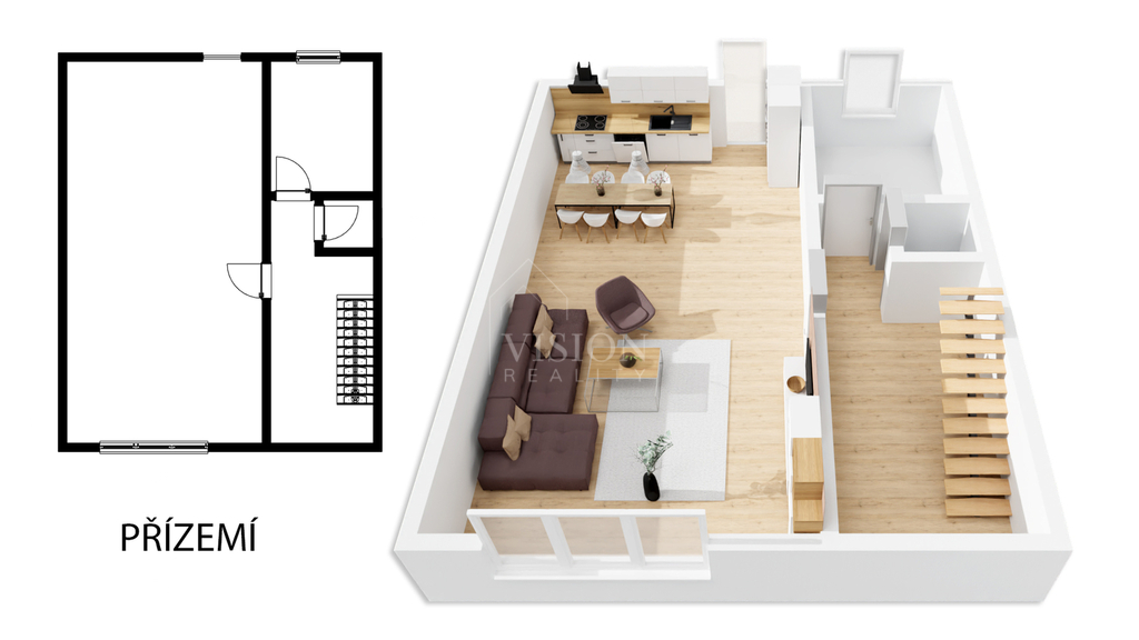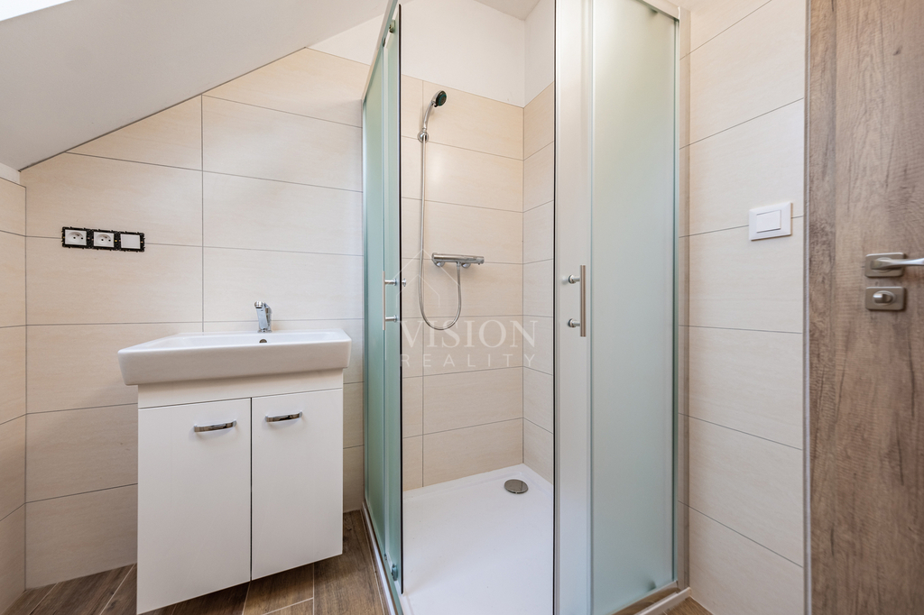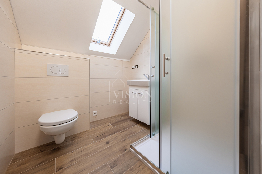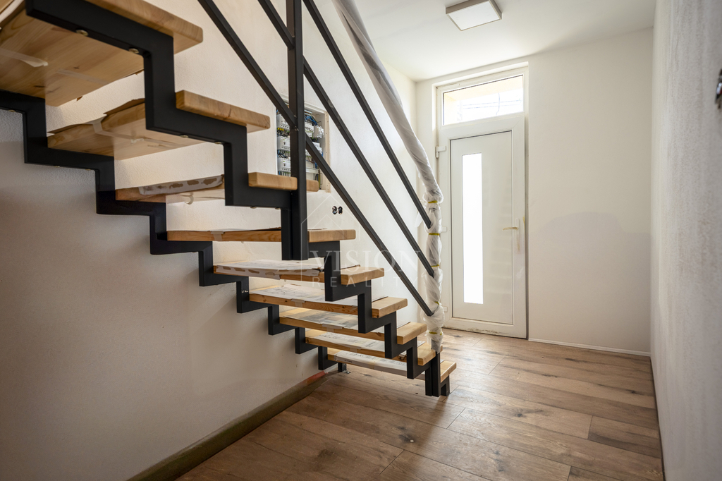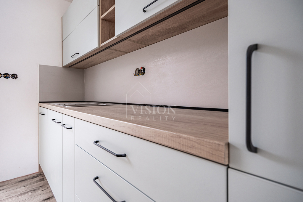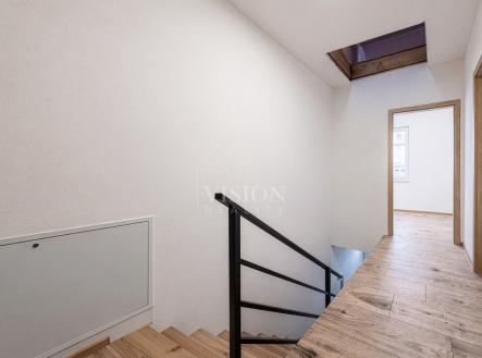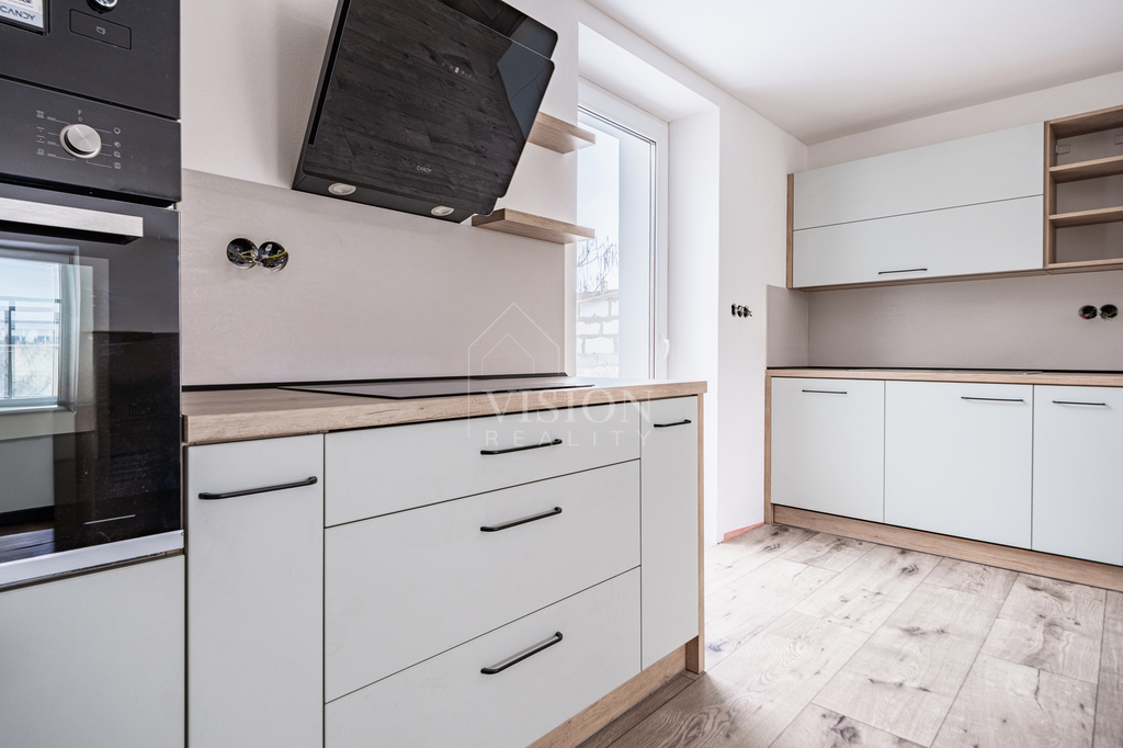 Prodej řadového rodinného domu po kompletní rekonstrukci, s obytnou plocha 116 m2. V suterénu je sklepní prostor 18 m2, přístupný ze zadního dvorku, v přízemí - vstupní chodba, obývací pokoj s kuchyní, jídelním koutem a vstupem na zadní dvorek, kde je malý skládek na nářadí s možností vybudování pergoly. V koupelně je sprchový kout, WC je samostatně. V prvním patře jsou 2 ložnice, malá pracovna nebo šatna a druhá koupelna se sprchovým koutem včetně WC. V podkroví je nečleněný zateplený prostor s možností využívání skladového prostoru. Jeho plocha je 26 m2. Do tohoto prostoru lze dokončit přístup dle potřeb nového majitele. Dům prošel kompletní a zdařilou rekonstrukcí, zůstaly pouze zděné konstrukce obvodových stěn a část prvků krovu. Dům je zateplen, okna jsou plastová, střešní okna dřevěná, podlahy vinyl a dlažba. Topení je řešeno tepelným čerpadlem voda vzduch a je podlahové. V obývacím prostoru je možnost umístění krbových kamen. Ohřev TUV je bojlerem. Dům je zařízen kuchyňskou linkou se spotřebiči, prostor pod schody může být dokončen dle přání nového majitele. Objekt je napojen na elektřinu, kanalizaci, vodovod a má vlastní studnu. Před domem je předzahrádka, která lze také upravit i na parkování. V případě zájmu o prohlídku volejte makléře.
