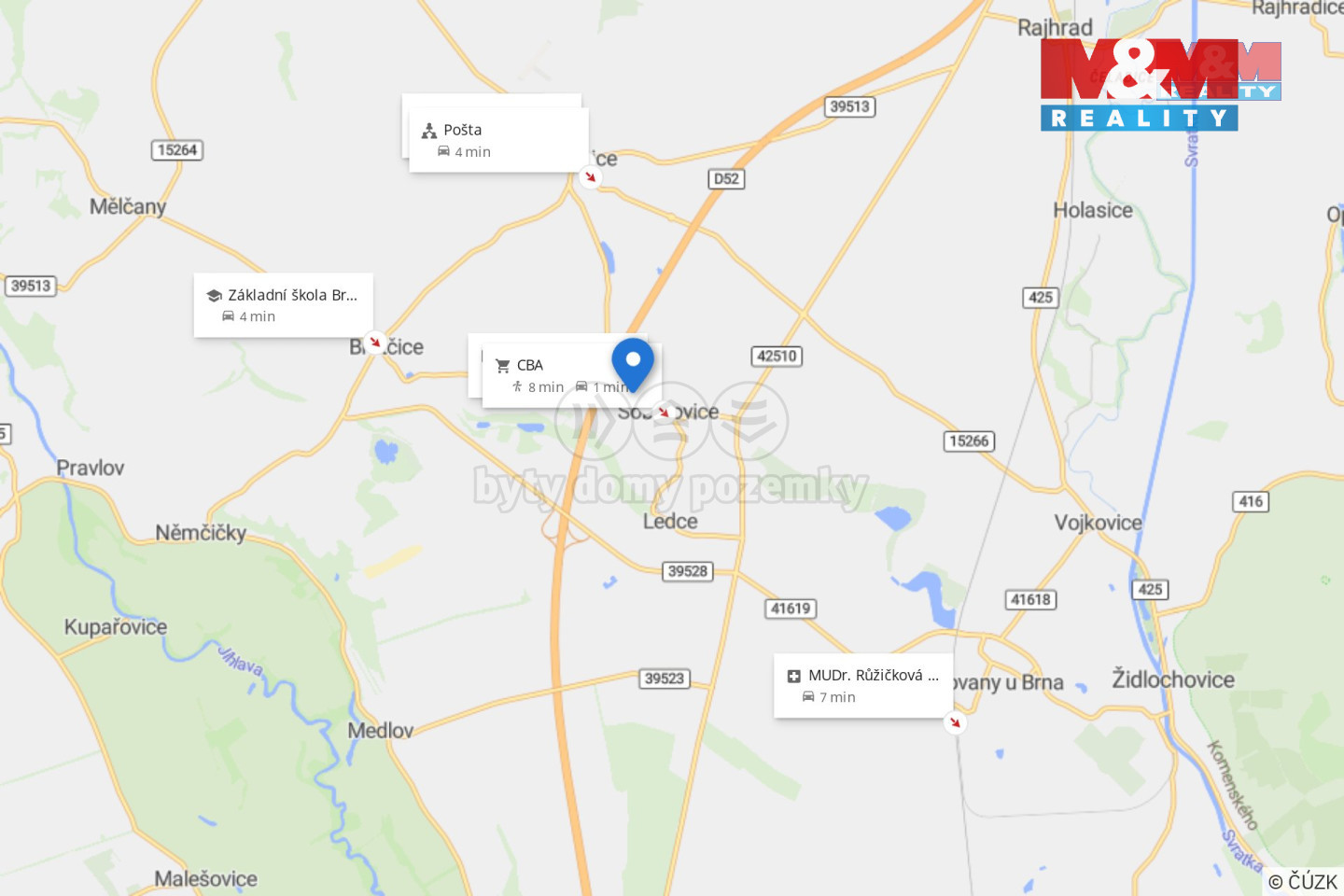 Prodej dvougeneračního rodinného domu 15 minut od Brna. Dům má dvě podlaží s dvěma bytovými jednotkami 3+1 s možností okamžitého bydlení, částečně podsklepený. 1.NP - 3 + kk, celková užitná plocha 130 m². Obývací pokoj 40 m², kuchyň 11 m², další pokoje 12 m² a 16 m². Koupelna se sprchovým koutem, WC. Velký a světlý prostor tvoří veranda, celkově 40 m². 2.NP - bytová jednotka 3+1, celkem 66 m². Kuchyň 10 m², pokoj 12 m², 2x pokoj 22 m². Koupelna a WC. Balkon, terasa a půda s vchodem z jednoho pokoje. Na pozemku 912 m² je garáž, dílna, přístřešek parkování, skleník, kvelbený sklep, zahrada 340 m². Sobotovice jsou vzdáleny jen pouhých 18 km od Brna. V obci se nachází obchod, mateřská školka. Veškerá občanská vybavenost je v Židlochovicích vzdálených 8 km. V okolí je pěkná příroda a možnost různých relaxačních a sportovních aktivit. Tato klidná a velmi vyhledávaná lokalita Vám dokáže nabídnout bydlení mimo ruch města a přesto kousek od všech kulturních i sportovních aktivit.