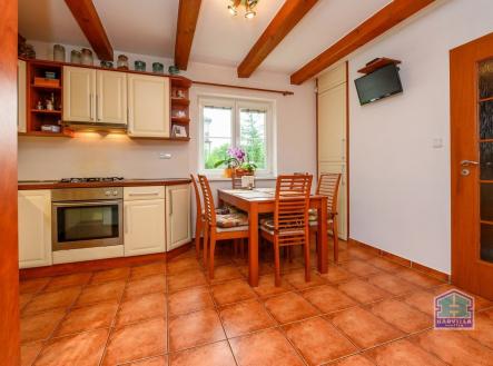 Nabízíme Vám ke koupi krásný rodinný dům na okraji malé obce Lipnice v okrese Plzeň-jih. Lokalita poskytuje naprostý klid, čistou přírodu a okolní lesy, přitom s výborným spojením do Rokycan i do Plzně (autem cca 20–25 minut), v obci je také vlakové i autobusové spojení. Dům o obytné dispozici 3+1 disponuje v přízemí (o obytné ploše 50 m2) zádveřím s vestavěnou skříní, plnohodnotnou kuchyní, prostorným obývacím pokojem s krbem, koupelnou se sprchou a WC a malou komorou, kde je umístěna pračka. Z obývacího pokoje je vstup na krytou venkovní terasu o výměře 20 m2. V podkroví o obytné ploše 50 m2, kam se dostaneme po dřevěných schodech, se nacházejí dva pokoje, další WC s umyvadlem a lodžie (13,5 m2). Dům má osazena plastová okna, sedlová střecha je pokryta krytinou zn. Bramac. Na pozemku je k dispozici kryté stání pro 2 auta, dílna a udržovaná menší zatravněná zahrada. Dům je vytápěn krbovými kamny s průduchy do podroví a je možné využít i elektrické podlahové topení v přízemí. Do domu je zavedena elektřina 220/400V, voda je přivedena z obecního vodovodu i z vlastní studny, odpad je sveden do kanalizace. Dům se prodává včetně vybavení. Ideální místo pro ty, kteří chtějí bydlet v přírodě, ale mít město na dosah. V obci je mj. prodejna COOP, další obč. vybavenost je k dispozici ve 3 km vzdáleném Spáleném Poříčí. Pokud hledáte klidné bydlení v rychlé dostupnosti do Plzně, neváhejte a domluvte si prohlídku.