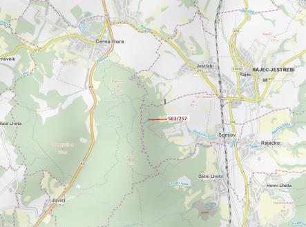 Lesní pozemek o výměře 2643 m2, parcelní číslo 563/257, podíl 1/1, katastrální území Spešov, obec Spešov, obec s rozšířenou působností Blansko, okres Blansko, Jihomoravský kraj.