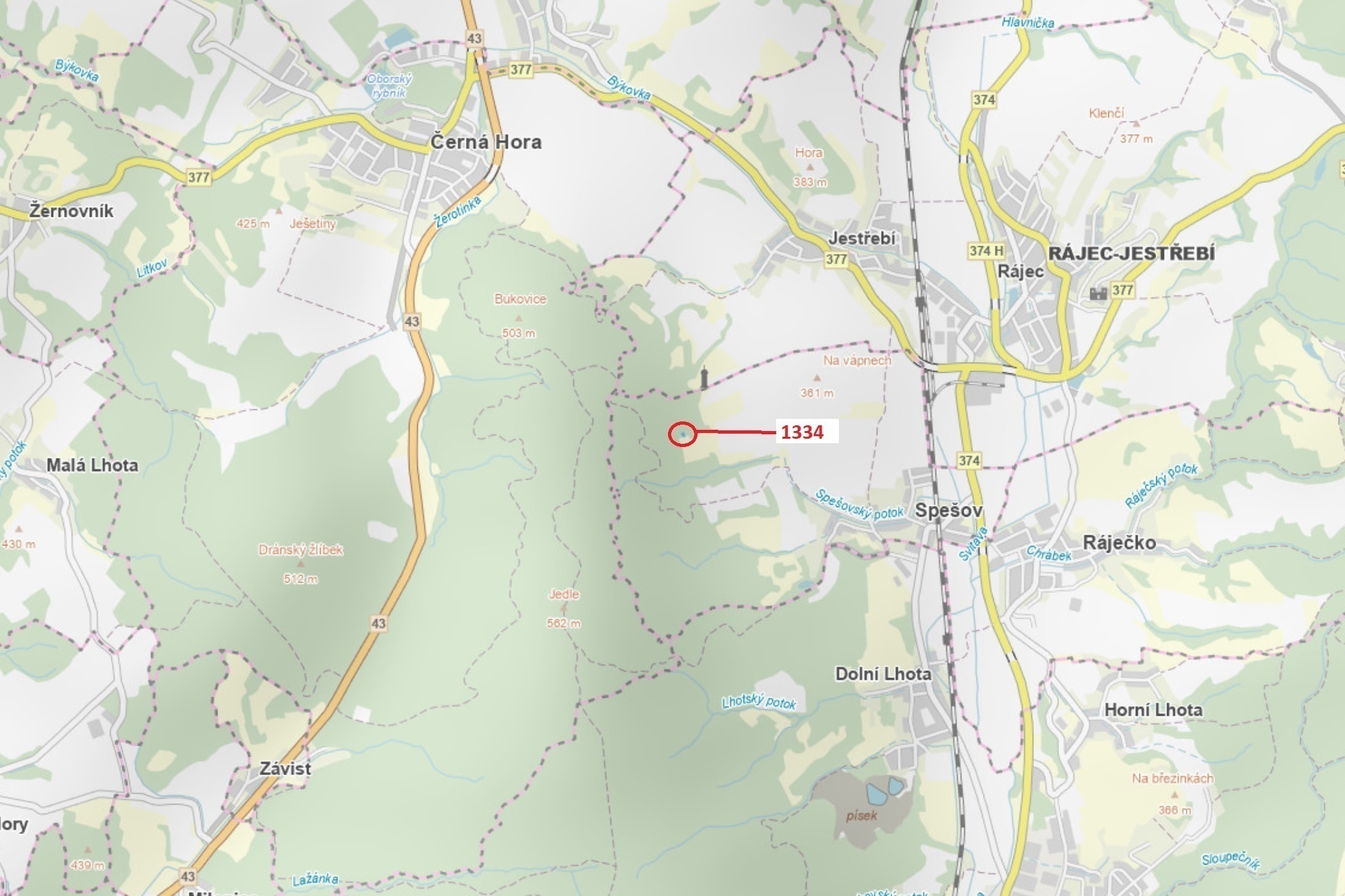 Lesní pozemek o výměře 420 m2, parcelní číslo 1334, podíl 1/1, katastrální území Spešov, obec Spešov, obec s rozšířenou působností Blansko, okres Blansko, Jihomoravský kraj.
