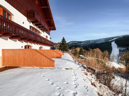Rezidence Slunečný svah v klidné části Špindlerova Mlýna - Bedřichově Ihned k nastěhování Základní informace o apartmánu - Dispozice 4+kk ve stavu FIT OUT - Podlahová plocha 108,2 m² a celková plocha 120 m² - Nachází se v 2. podlaží - Orientace na jih - K jednotce náleží garáž v domě - Balkon o velikosti 11,8 m² V jakém stavu je byt - Jednotka ve stavu FIT OUT nabízí nové parkety i omítky, nové interiérové i vchodové dveře a kompletní nové rozvody - Jednotka včetně koupelny se vybavuje dle uvedených standardů Dům po rekonstrukci - Nové vstupní vchodové dveře i dveře do jednotek, schránky - Zrenovovaná fasáda, chodby i schodiště - Společná kolárna/lyžárna pro úschovu sportovního vybavení - Sluneční terasa s grilem Kouzelné výhledy a sjezdovka za rohem - Přímý přístup ke sjezdovkám - Nejlepší turistické i cyklistické trasy rovnou u domu - Bobová dráha v dochozí vzdálenosti Dokonalé zázemí s horskou atmosférou - Kvalitní kavárny a restaurace, útulné bary - Wellness, aquacentrum i plavecký bazén pro veřejnost jen pár minut od domu - Obchody, lékařská péče, půjčovny i prodejny sportovního vybavení - Pestrý kalendář kulturních a sportovních akcí