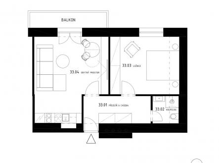 Prodej apartmánu č. 33, 2+kk, 52,9 m² ve stavu FIT OUT