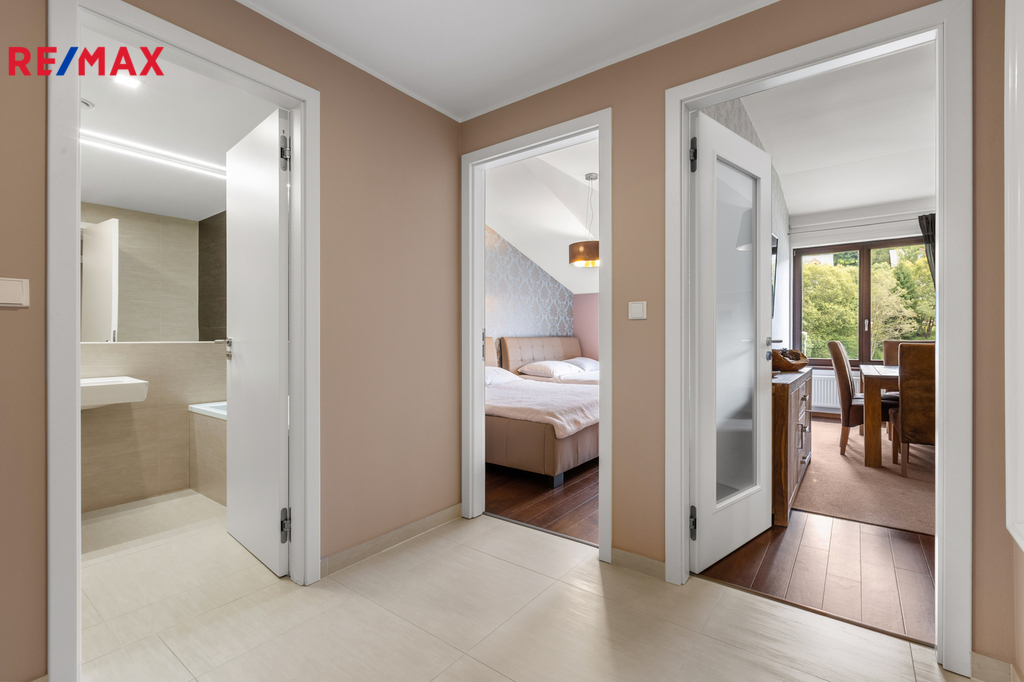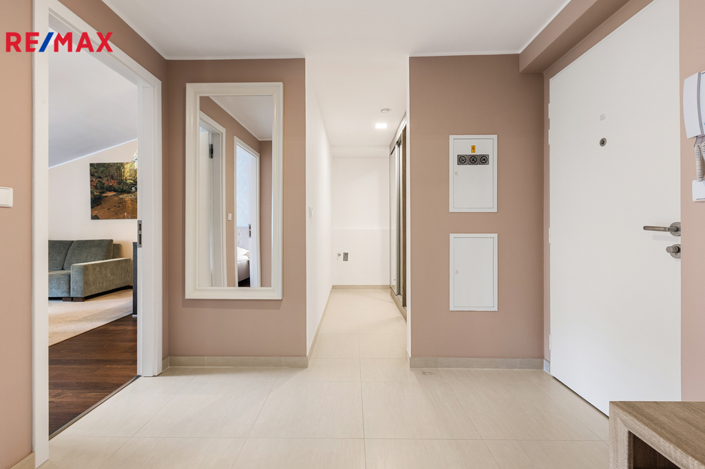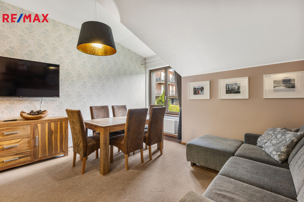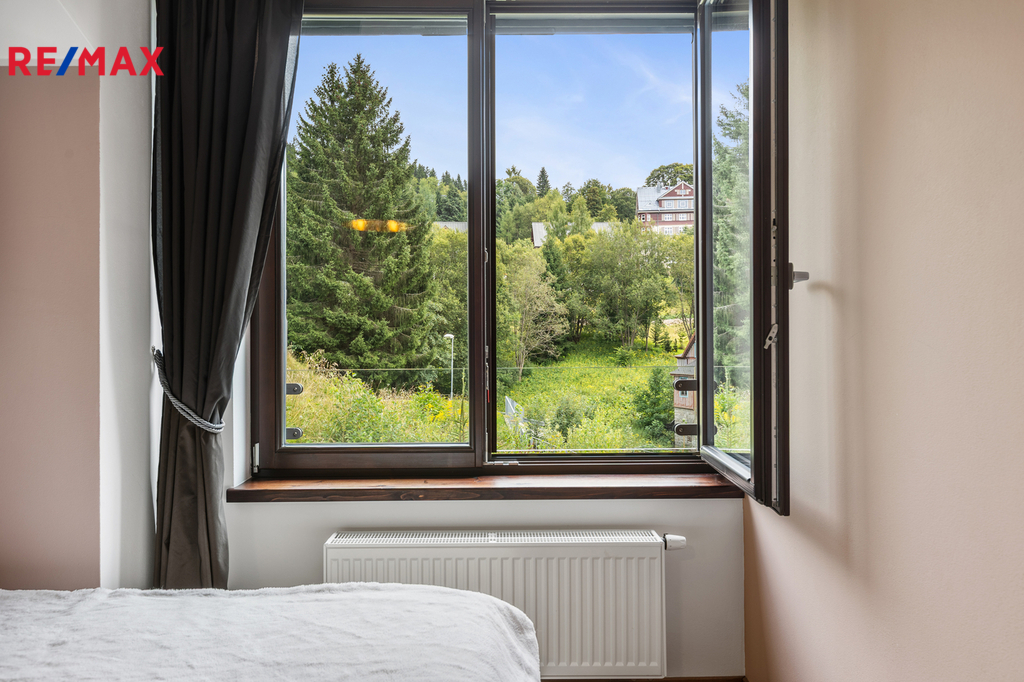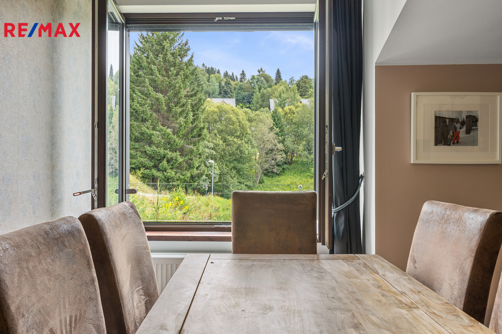 Dovoluji si Vám nabídnout ke koupi prostorný a plně vybavený apartmán 2+kk o podlahové ploše téměř 60 m², který se nachází v klidné části Špindlerova Mlýna, v docházkové vzdálenosti od centra města. Apartmán se nachází v luxusním horském apartmánovém komplexu Luční dům, který byl kolaudovaný v 10/2015. Dispozičně nabízí prostorný obývací pokoj s plně vybavenou kuchyňskou linkou vč. myčky, barovým pultem, jídelním stolem se židlemi a rozkládací pohovkou, dále ložnici se dvěma manželskými postelemi, samostatnou šatnu s vestavěnými skříněmi a přípojkou na pračku a sušičku, a koupelnu s vanou a toaletou. V bytě jsou vysoké stropy, které zajišťují vzdušnost a světlost celého prostoru. Vstupní dveře jsou bezpečnostní, okna dřevěná. Interiér doplňují polopropustné bílé rolety a závěsy, které poskytují soukromí i estetický dojem. Vytápění je zajištěno pomocí centrálního systému Maibes, který umožňuje pohodlné ovládání na dálku dle aktuálních potřeb uživatele. K bytu náleží sklepní kóje o výměře 4,5 m², vybavená sušící skříní na oblečení a obuv a elektrickou přípojkou pro nabíjení elektrokol. Kromě garážového stání v suterénu domu je k dispozici také druhé parkovací místo přímo před budovou, které je přístupné na základě parkovací karty. Vjezd do garáží je na dálkové ovládání, vrata se zavírají automaticky. Provozní náklady jsou velmi příznivé: měsíční poplatek do fondu SVJ činí cca 3 000 Kč, zálohy na elektřinu 450 Kč. Apartmán je nabízen včetně veškerého vybavení a zařízení, je ve výborném technickém stavu a připraven k okamžitému užívání bez nutnosti dalších investic. Díky své poloze, technickému standardu, doplňkovému zázemí a velmi praktickému uspořádání se jedná o výjimečnou nabídku v rámci lokality Špindlerův Mlýn. Tato nemovitost představuje ideální příležitost pro rekreační využití, trvalé bydlení či jako výhodná investice s potenciálem pro krátkodobé pronájmy. Doporučuji osobní prohlídku.