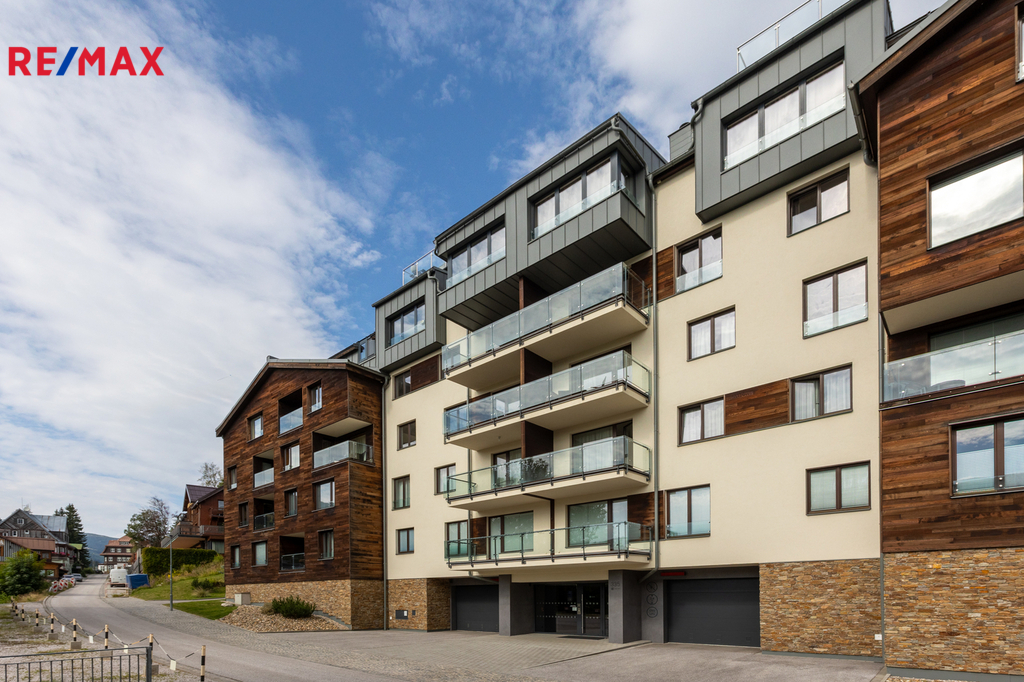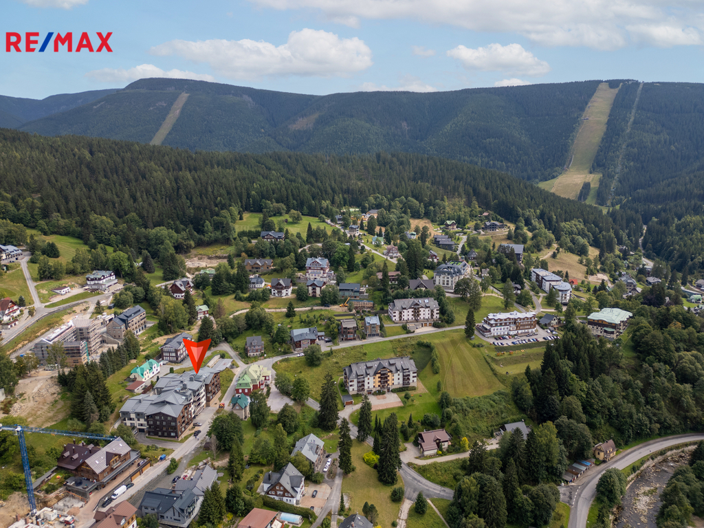 Prodej vybaveného apartmánu v luxusním horském resortu ve Špindlerově Mlýně – 2+kk, garáž, sklep