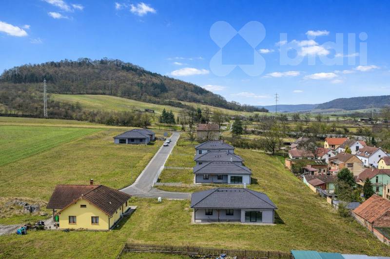 Nabízíme k prodeji novostavbu přízemního rodinného domu v klidné části obce Srbeč, okres Rakovník. Dům je situován na prostorném pozemku o výměře 1036 m2 a je ideální volbou pro rodinné bydlení v příjemném a klidném prostředí. V lokalitě je na výběr více rodinných domů s jednotnou moderní dispozicí. K dispozici jsou jak dřevostavby, tak zděné domy, díky čemuž si můžete zvolit variantu, která nejlépe odpovídá vašim požadavkům na bydlení. Rodinný dům je řešen jako jednopodlažní objekt půdorysného tvaru "L" se sedlovou (valbovou) střechou. Hlavní vstup do domu je situován z pravé strany objektu přes vstupní zádveří. Ze zádveří je přístup do technické místnosti a do chodby, která slouží jako hlavní komunikační prostor domu. Dispozičně dům nabízí obývací pokoj s kuchyňským koutem a přímým vstupem na terasu a zahradu, dále ložnici, dva samostatné pokoje se šatnou, koupelnu, samostatné WC a technickou místnost. Technické parametry a vybavení: * konstrukce: kvalitní zděná stavba z systému Ytong s nadstandardním zateplením a důrazem na energetickou úspornost. Stabilní železobetonová základová deska, valbová střecha s dřevěnými vazníky, trojskla a podlahové vytápění zajišťují dlouhou životnost i komfortní bydlení. * podlahové vytápění v celém domě * ohřev teplé vody: tepelné čerpadlo * možnost instalace krbových kamen - připraven komín Schiedel * voda: napojení na obecní vodovod * kanalizace: napojení na ČOV * plastová okna s izolačními trojskly Na pozemku je prostor pro vybudování terasy, zahrady, parkovacího stání, případně dalších úprav dle představ budoucího majitele. Dopravní dostupnost: Obec má velmi dobrou dostupnost do Prahy. Napojení na je možné po rychlostních komunikacích D6 a D7, přičemž dojezdová vzdálenost na okraj Prahy je přibližně 35minut autem dle dopravní situace. Lokalita: Srbeč je klidná obec obklopená přírodou, lesy a loukami, vhodná pro rodinné bydlení i rekreaci. V obci se nachází základní občanská vybavenost (mateřská škola, obchod, obecní úřad), další služby jsou dostupné v Rakovníku. Lokalita nabízí klidné a bezpečné prostředí s možností procházek, cyklistiky a výletů do okolí. Dům je prodáván ve stavu před dokončením interiéru. Cena nezahrnuje kuchyni, zařizovací předměty, podlahy, interiérové dveře, obklady ani dlažby, aby si nový majitel mohl interiér dokončit dle vlastního vkusu a rozpočtu. Nemovitost je kompletně napojena na inženýrské sítě (voda, elektřina, ČOV) a aktuálně se nachází ve fázi těsně před kolaudací. Financování hypotečním úvěrem je připraveno. Hypoteční poradce nemovitost osobně navštívil, je detailně seznámen s projektovou dokumentací a má k dispozici veškeré podklady potřebné pro zpracování odhadu. Je připraven aktivně jednat s bankami s cílem zajistit pro Vás co nejvýhodnější úrokovou sazbu i optimální nastavení splátek. Podrobnější informace naleznete na Facebookové stránce Rodinné domy Rakovnicko - Džbán. Dále více na webu rdsrbec.