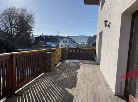 Srní; apartmán 3+kk (93 m2) s terasou (27 m2) a vlastním wellnessem (masážní vířivka whirpool)