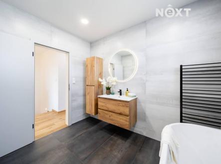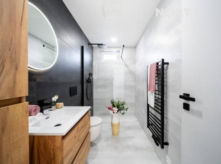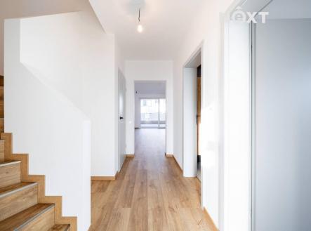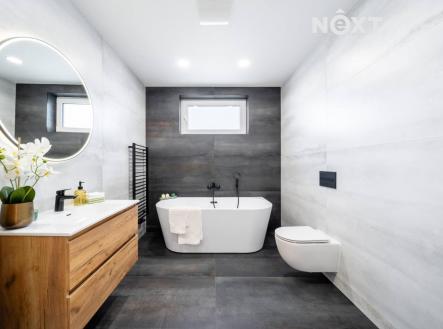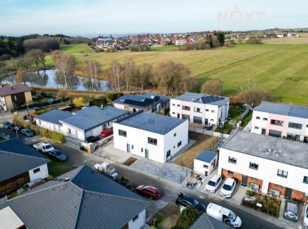 V atraktivní lokalitě Srubec, v klidné ulici Smrková, byl právě dostavěn a řádně zkolaudován krajní dvoupodlažní řadový dům o dispozici 5KK s celkovou užitnou plochou 121 m². Dům je součástí dvojdomku, který nabízí 2 bytové jednotky postavené jako samostatné krajní řadové domy se zahradou, terasou a se dvěma parkovacími místy. Rodinný dům č. 1 je již prodaný a právě máte příležitost koupit dům č.2, který nabízí mimořádně komfortní a nadstandardní bydlení. Dům má smysluplně řešený půdorys. V přízemí Vás přivítá prostorné zádveří (5,43 m²), na které navazuje chodba (5,14 m²), pracovna nebo ložnice chcete-li (9,69 m²), koupelna se sprchovým koutem a toaletou (4,69 m²) a technická místnost/sklad (2,10 m²). Dominantou přízemí je nadstandardně prostorný obývací pokoj s kuchyní o celkové užitné ploše 34,84 m² se vstupem na terasu (13,8 m²) a zahradu (174,2 m²). Do prvního patra (2.NP) vede pohodlné schodiště (6 m²). V patře se nachází klidová zóna o 3 pokojích. Ložnice (17,25 m²) s praktickou šatnou, další pokoj (14,53 m²) se šatnou a třetí pokoj (15,6 m²). Dále se zde nachází koupelna s vanou a toaletou (7,24 m²), vše spojeno chodbou (5,04 m²). Každý metr čtvereční zde má své opodstatnění. Dům je navržen tak, aby odpovídal potřebám moderní rodiny a nabízel jak prostor pro společný život, tak klid a soukromí. Na stavbu jsou použity kvalitní materiály s důrazem na design a dlouhou životnost. V ceně domu jsou zahrnuty interiérové dveře a zárubně, dlažby, sanita v koupelnách značky Hans Gröhe, podlahy Alpha Vinyl a kastlíky s přípravou na venkovní žaluzie. Do ceny domu je dále zahrnuta terasa za domem, nezámrzný venkovní kohout na vodu, oplocení a zídka mezi domy. Kuchyňskou linku, osvětlení, nábytek, pergolu a žaluzie si řešíte na vlastní náklady. Součástí inzerátu jsou vizualizace interiéru, které pomohou s představou, jak by mohl Váš nový domov mohl vypadat. Provoz domu je nízkoenergetický, vytápění je řešeno kondenzačním plynovým kotlem včetně ohřevu vody. V celém domě je podlahové vytápění. Energetický štítek (PENB) třídy B. Dům je napojený na kanalizaci, elektřinu a veřejný vodovod. Lokalita Srubec patří mezi nejvyhledávanější místa pro rodinné bydlení v blízkosti Českých Budějovic. V pěší vzdálenosti najdete školu, školku, dětské hřiště, obchod, restauraci i lékaře. Výborné spojení s městem zajišťuje městská hromadná doprava – linka č. 13. Srubec nabízí výjimečné zázemí pro rodiny s dětmi i pro ty, kdo hledají klidné místo k životu obklopené přírodou s veškerou občanskou vybaveností. Tento dům je ideální volbou moderního, designového a prakticky řešeného bydlení s příjemnou atmosférou a kvalitou bez kompromisů. Bydlet můžete ihned. Rádi pomůžeme s výhodným financováním. Domluvte si prohlídku, těšíme se na Vás. Pro komunikaci uvádějte evidenční číslo zakázky N112423.