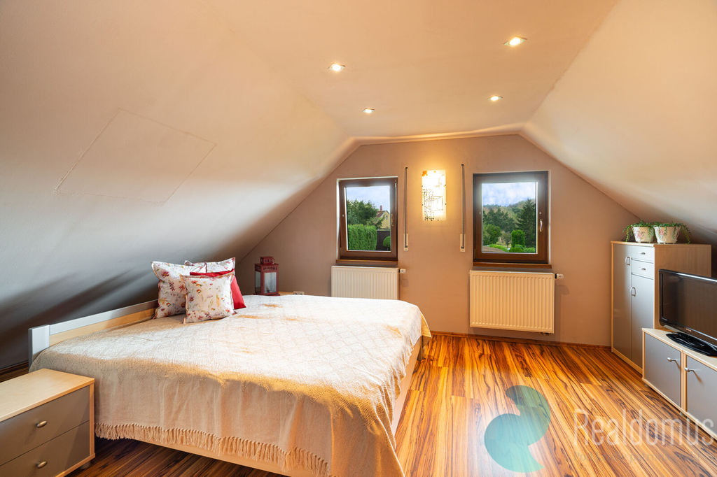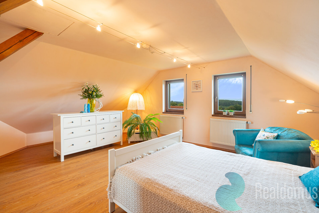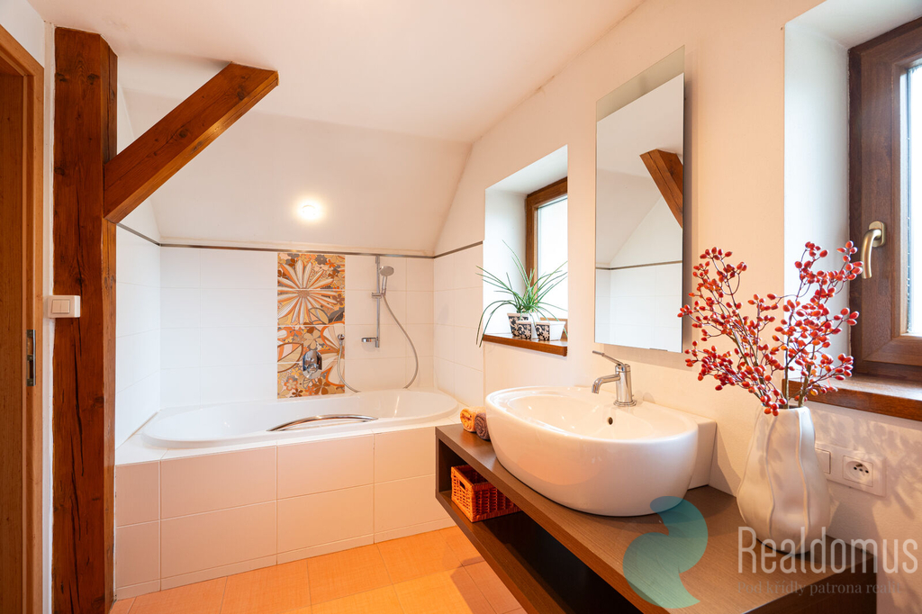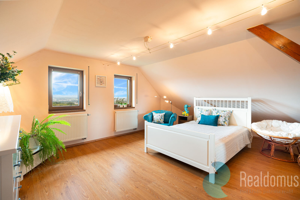 Ve výhradním zastoupení majitele vám představujeme krásnou nemovitost, která je charakterizována nadstandardní kvalitou provedení stavby, nádherným výhledem, vzrostlou zahradou, soukromím a klidem. Stylová vila na Srubci z roku 2006 si stále drží svůj jedinečný šarm. Nemovitost se nachází v klidné (slepé) ulici na Srubci na pozemku o rozloze 720 m2 a poskytuje 196 m2 užitné plochy (rozdělené do 2 pater), nádhernou vzrostlou zahradu s terasami a posezením a 2 parkovací místa. Dům je v současné chvíli rozdělen na 2 bytové jednotky. Hlavní bytová jednotka 3kk s velkorysou užitnou plochou 159 m2 se skládá z nádherné prosvětlené hlavní místnosti s kuchyňským koutem o rozloze 56 m2, dvou velkých ložnic (31 m2 a 27 m2), dvou koupelen (7 m2 a 6 m2) a technické místnosti. Druhá bytová jednotka 1kk má obytnou místnost s kuchyňským koutem (31 m2) a koupelnu 6 m2. Oba byty mají společnou chodbu a mohou být součástí jedné bytové jednotky, kdy jedna z ložnic bude mít vlastní koupenu s toaletou. Velký potenciál má toto dělení pro soužití více generací, či odrostlejší děti, které mohou mít v domě své samostatné zázemí. Technické parametry domu i kvalita provedení stavby zaručují bezstarostný život na nádherném místě s výhledem na České Budějovice a okolí. Dům je napojen na městskou kanalizaci a vodovod, na zahradě je i studna, z níž lze čerpat užitkovou vodu. Vytápění domu je zajištěno elektrokotlem, v přízemí je podlahové topení, v patře pak radiátory. V hlavní obytné místnosti jsou krbová kamna, která lze použít k vytápění hlavní bytové jednotky a dotváří též nádhernou atmosféru tohoto stylového prostoru. Zveme vás k návštěvě tohoto kouzelného a velmi osobitého prostoru a jsme si jisti, že na vás zapůsobí stejně, jako zapůsobil na nás. K domluvení termínu prohlídky kontaktujte prosím makléřku této nabídky. Uvedené výměry jsou orientační. V případě více zájemců bude nemovitost prodána nejlepší nabídce a majitel si vyhrazuje právo vybrat kupujícího na základě jím zvolených kritérií. Veškeré zveřejněné údaje v tomto inzerátu mají pouze informativní charakter.