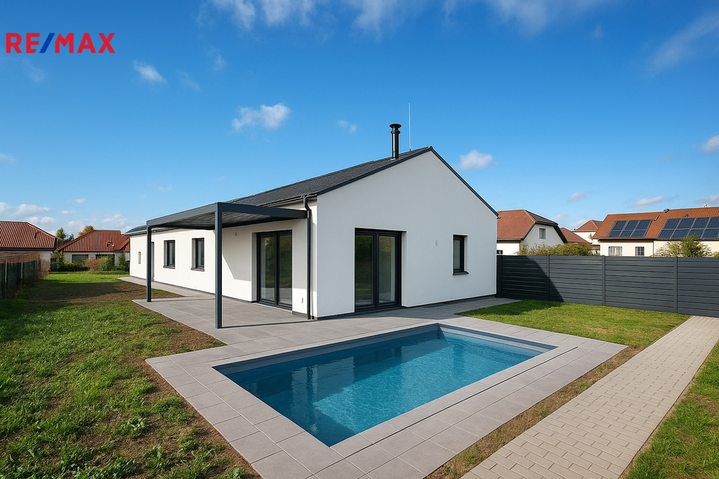 Zděná novostavba 4+kk v Srubci u Českých Budějovic – moderní dům se zahradou