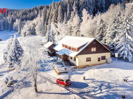 Máme pro vás na Šumavě zcela výjimečnou nemovitost! V centrální části v nadmořské výšce 1000 m n.m., v sousedství sjezdovek lyžařského areálu Zadov-Churáňov, s obrovským pozemkem 5,5 ha, s nádherným výhledem. Usedlost, která se po generace dědí z otce na syna. Za celou svoji 250letou historii měla usedlost v pozemkové knize či v katastru v kolonce příjmení vlastníka jen jediné jméno. Pojďte navázat na tento jedinečný příběh a splňte si svůj šumavský sen! Zadov je jedním ze tří nejnavštěvovanějších lyžařských areálů Šumavy. Kromě sjezdovek zde najdeme běžecký areál, začínají zde běžecké stopy směrem ke Zhůří, Horské Kvildě, Kvildě, Novým Hutím či Popelné, středisko nacházející se v centrální části pohoří je oblíbeno i cyklisty a pěšími turisty. Hned vedle skiareálu Kobyla najdeme místní část s příznačným názvem V ráji. Ačkoliv se nachází uprostřed Zadova, je před zraky turistů skryta. Velkou část lokality V ráji zabírá tradiční šumavská usedlost „U Tomíšků“, k níž patří téměř tříhektarová louka a dva hektary lesa v uceleném souboru. Místo je to naprosto výjimečné – od chalupy ležící pod lesem dojedete na lyžích až ke čtyřsedačkové lanovce, ze zápraží, terasy a dokonce z celého pozemku se můžete kochat nádhernými výhledy na sjezdovku i do krajiny a také díky jihovýchodní orientaci si užívat dostatku horského slunce. Prostě ráj… Hlavní objekt má zastavěnou plochu 335 m2. V přízemí obytné části najdeme obytnou kuchyni, čtyři pokoje, koupelnu, verandu se záchodem. Z chodby vedou schody do hezkého sklepa s klenutým stropem a také schodiště do podkroví, kde je jeden obrovský pokoj (přes 60 m2). Další obytnou plochu by bylo možné získat z prostorné půdy. Samozřejmě nic nebrání využít i stávající hospodářskou část a upravit ji k obývání. Hospodářskou část tvoří maštal (nyní ovčín) a dvě stodoly (z jedné je sklad paliva a nářadí). Vedle chalupy se nachází dvě vedlejší stavby, jedna slouží jako sklad techniky (zast. plocha 43 m2), druhá jako garáž (zast. plocha 29 m2). Usedlost je zásobována vodou z nové vrtané studny, dalším zdrojem vody je přítok z lesního pramene. Odpad je řešen septikem s přepadem. Možností, jak s nemovitostí nacházející se na nádherném místě v šumavské TOP lokalitě naložit, se nabízí více - jen je potřeba dodržet současnou zastavěnou plochu a podlažnost (1 NP + podkroví). Neváhejte zavolat nebo napsat si o více informací. Tato nabídka je vskutku ojedinělá!