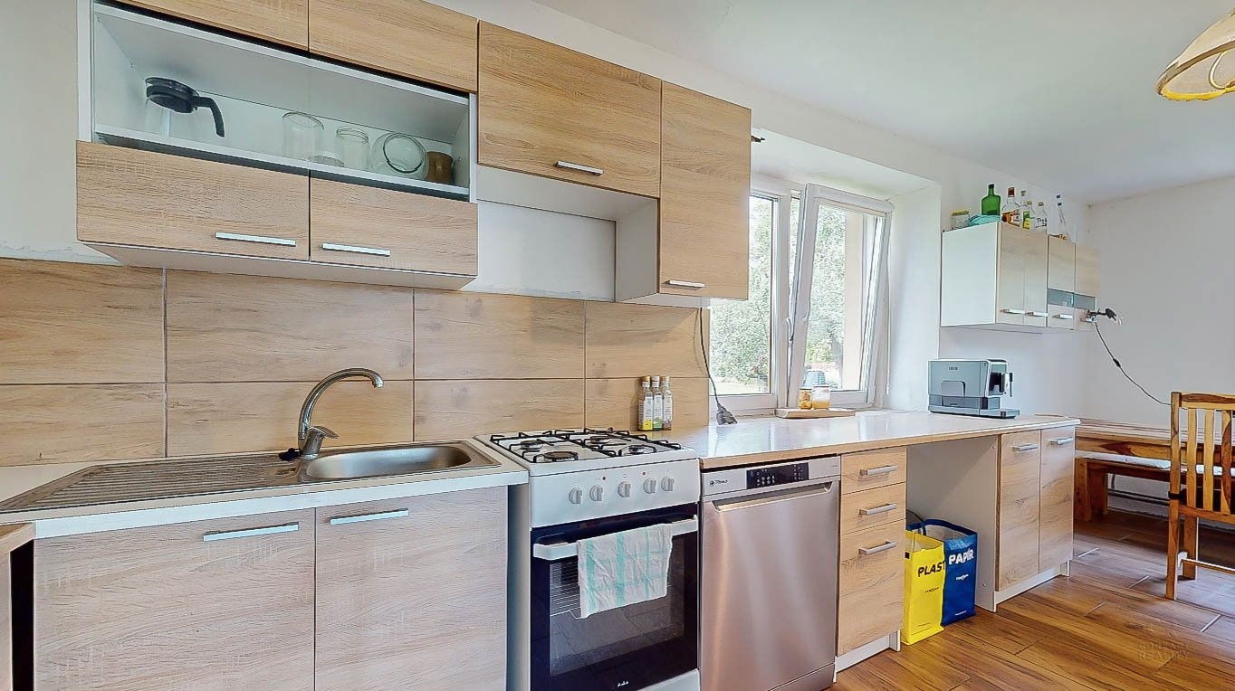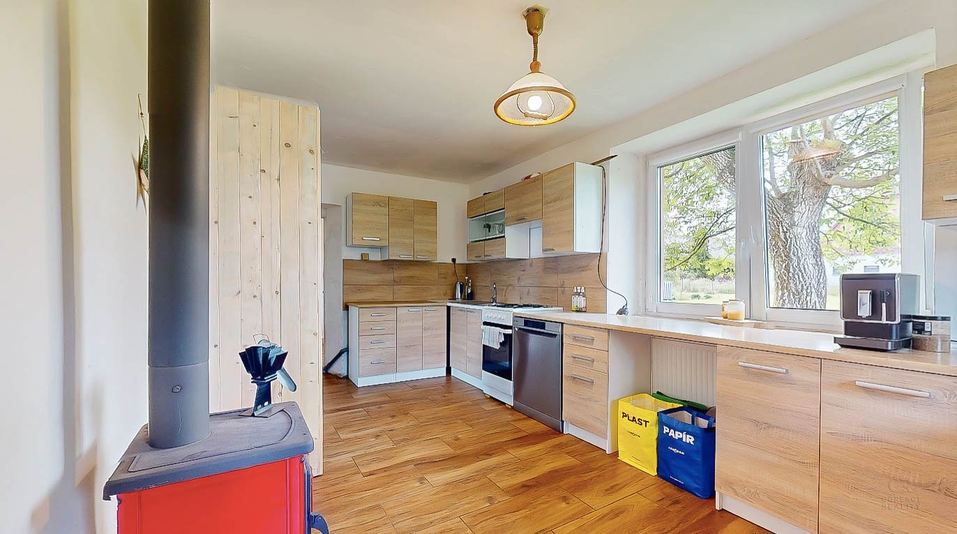 Nabídka domu na hezkém místě s prostornou zahradou a velkým potenciálem pro vaše budoucí bydlení v obci Nová Červená Voda na Jesenicku. Dům je uzpůsoben pro bydlení tak, že v přízemí majitel vybudoval dispozici 2+1 se samostatnou toaletou, koupelnou a velkou chodbou. V patře jsou další dva pokoje, které je potřeba upravit dle vlastních představ a do těchto pokojů v patře se zatím vchází ze strany velké stodoly, která tvoří druhou část domu. Z chodby v přízemí se dá probourat stěna a za ní jsou již schody do zmíněných dvou pokojů v patře. Část stodoly má velký potenciál k výstavbě dalšího bydlení, apartmánu, nebo prostorné garáže. Parcela kolem domu je velmi prostorná a co může být pro někoho zajímavé je možnost zastavitelnosti dalšího domu. Územní plán dovoluje stavbu s označením SV - plochy smíšené obytné a sítě vedou na hranici pozemku. Obec Nová Červená Voda sa nachází téměř uprostřed mezi obcemi Žulová, Vidnava, Mikulovice a Jeseník s dojezdy do pár minut. Obec je velmi útulná a udržovaná, kolem obce jsou krásná místa které můžete navštívit a dá se říci, že nikdy neomrzí - zřícenina Karlštejn, velké rybníky, Rychlebské stezky aj. Sejdeme se spolu na prohlídce a popř. další dotazy rád zodpovím telefonicky.