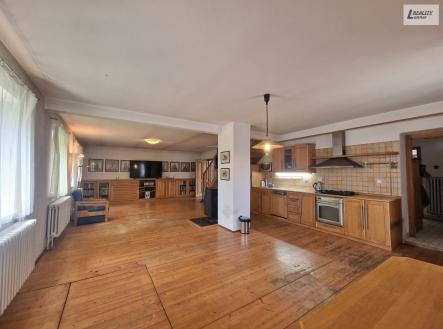 Nabízíme Vám prostorný dům vč. pergoly, voliér pro ptactvo, na hezkém a žádaném místě, v obci Stará Huť u Dobříše, v ulici K Vršíčku. Jedná se o dvougenerační, rodinný dům (postavený převážně z cihel a kamene) o dvou nadzemních podlaží (přízemí a podkroví), po částečných rekonstrukcích které probíhali v posledních cca 15 letech. Dům nabízí celkem 234 m2 podlahové plochy, zastavená plocha 169 m2, vše na pozemku s celkovou výměrou 511 m2. Dispozičně dům nabízí využití v přízemí: vstupní chodba (zádveří), menší koupelna s WC, menší kuchyně s jídelnou, pokoj s ložnicí vč. krb. kamen, prostorný obývací pokoj vč. kuch. koutu (vč. velkých krb. kamen a vstupu do sklepního prostoru 6 m2), velká koupelna (vč. vchodu přímo ven, vč. sprchového koutu, velké galerie a rohové vany s vířivkou) V podkroví přístupném po schodišti (masiv) z obývacího pokoje se nachází: velký pokoj, toaleta s umyvadlem, komora a prostorná ložnice. U domu kryté parkovací stání pro vozidlo, motorku atd., několik voliér pro ptactvo (koníček předchozího vlastníka), pergola s posezením, vykopané zahradní jezírko (k dokončení) a udírna. Dům má dále: zachovalou střešní krytinu, z masivu na zakázku od truhláře (interiérové dveře vč. zárubní, schodiště, kuch. linka v ob. pokoji), kvalitní a zachovalé dřevné podlahy, vč. dlažeb, novější velkou koupelnu, dřevěná zachovalá okna (částečně novější), rozvody vody a opady, vč. elektřiny částečně v mědi. Sítě: elektřina 230/380V, topení strašní plyn. kotel Dakon a krbová kamna na dřevo v přízemí (ob. pokoj a pokoj s ložnicí), ohřevu vody novějším bojlerem, obecní vodovod, kanalizace a plyn, vlastní kopaná studna (pro zálivku), ústřední rozvod topení do radiátorů. EPNB připravujeme proto prozatím uvádíme třídu G. Dům je volný ihned k dispozici. V místě je kompletní obč. vybavenost a výborné spojení na Prahu. V případě zájmu Vám rádi vyřídíme financování hyp. úvěrem. 3D půdorys zašleme na vyžádání, zatím v přípravě.