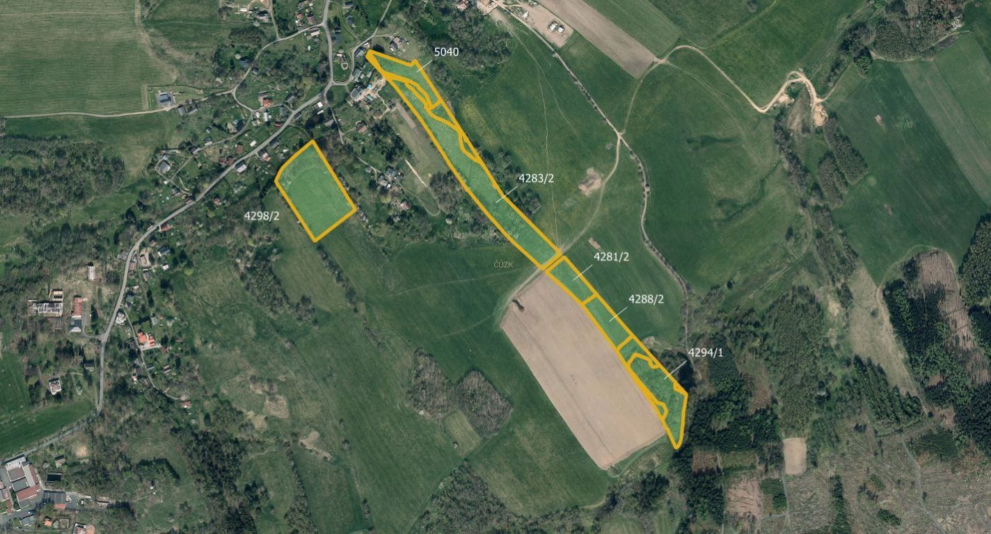 V katastrálním území Staré Křečany, okres Děčín, nabízíme k prodeji soubor zemědělských pozemků ve výlučném vlastnictví (100% podíl). Celková výměra pozemků činí 56 275 m. Převážně se jedná o trvale travní porost - 44 553 m. Pozemky jsou zapsány na listu vlastnictví č. 831 pod čísly 4170/1, 4281/2, 4283/2, 4284/2, 4284/4, 4285/2, 4285/3, 4288/2, 4290/2, 4294/1, 4298/2, 4898/2, 5039/1 a 5040. Nezaujala vás tato konkrétní nabídka? Vyplňte nezávaznou poptávku na našich webových stránkách a budete pravidelně dostávat nové nabídky e-mailem. Pokud máte zájem nebo dotazy, neváhejte mě kontaktovat na uvedeném telefonním čísle nebo e-mailové adrese. Pozemek nabízím k prodeji v zastoupení vlastníka. Cena je uvedena včetně provize. Majitel si vyhrazuje právo vybrat kupujícího na základě nabídky.