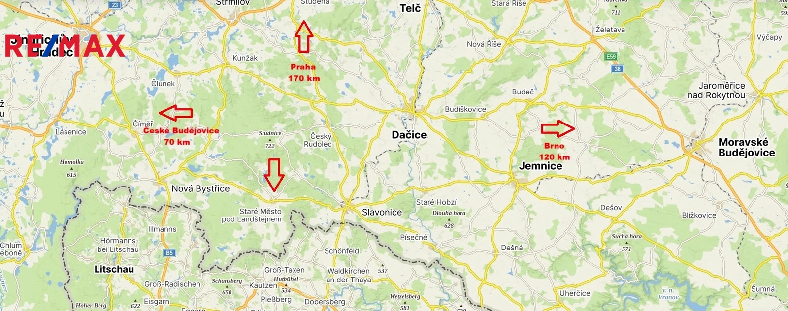 V rámci exkluzivní smlouvy nabízíme k prodeji dům k rekonstrukci s možností přestavby na rekreační využití, s uzavřeným dvorem, garáží, dílnou a vydlážděnou plochou před domem. Celková plocha pozemku je 563 m2, z toho zastavěná 298 m2, dvůr o rozloze 165 m2, plocha před domem o velikosti 100 m2. Nemovitost je ve stavu započaté kompletní rekonstrukce. Dříve sloužila jako restaurace. Kolem roku 2010 byla provedena rekonstrukce krovu a položena nová střešní krytina. Zároveň byla provedena nová instalace rozvodů vody, odpadu a elektřiny. Asi před osmi lety byla vyměněna původní dřevěná okna na boku budovy za plastová. Velká okna v čele budovy jsou původní dřevěná. Prostorná půda nabízí možnost půdní vestavby o několika pokojích. Majitelé dávají k dispozici vypracovaný projekt k přestavbě domu na dva apartmány. Vytápění je zajištěno dálkovým rozvodem z obecní teplárny a kamny na tuhá paliva. Voda je napojena na veřejný vodovod, dále možnost využívání vody z vlastní studny. Odpad je sveden do jímky s přepadem do trativodu a napojen na veřejnou kanalizaci. Městys Staré Město pod Landštejnem se nachází na pomezí Čech, Moravy a Rakouska a disponuje základní občanskou vybaveností jako je Obecní úřad, školka, knihovna, samoobsluha se smíšeným zbožím, restaurace apod. Hrad Landštejn se nachází pouhé 3 km od obce. Historické město Slavonice vzdálené 8 km disponuje kompletní občanskou vybaveností. Dačice, město s rozšířenou působností, jsou vzdálené 20 km. Staré Město pod Landštejnem se nachází v samém srdci přírodního parku Česká Kanada v malebné krajině plné lesů, rybníků a luk. V okolí se nachází značná síť turistického značení, cyklostezek a zimních běžeckých tras.