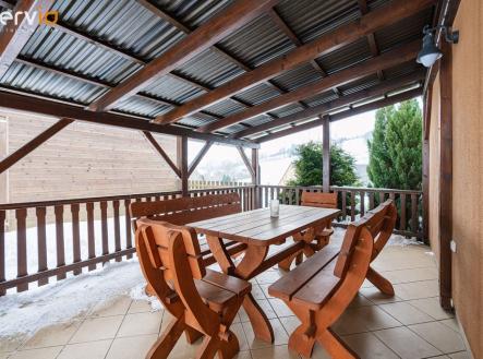 Nabízíme k prodeji ubytovací zařízení 4+1 v Kunčicích u Starého Města pod Sněžníkem, v okrese Šumperk. Zastavěná plocha domu činí 94 m2, užitná plocha 110 m2, celková plocha pozemku 803 m2. Dispozičně je dům řešen jako 4+1, z toho 3+1 v přízemí, kde se nachází dvě ložnice, obývací pokoj s krbem, kuchyň s barem a koupelna s WC. Ve 2.NP je poslední pokoj (až 5 lůžek) a koupelna s WC. Vytápění zajišťují lokální elektrické přímotopy. Na pozemek je zaveden obecní vodovod, ale nyní se používá primárně pitná voda ze studny, napojení na kanalizaci a na novou nedalekou čističku odpadních vod. Venkovní zastřešené posezení. Dům se prodává včetně vybavení na foto. V ceně jsou zahrnuty 2 parkovací stání a v případě zájmu je možné dokoupit navíc až další 3 parkovací stání (1 PS za 150 tis. Kč). Přímo na protějším kopci se nachází moderní skiareál Kunčice s 8 sjezdovkami a lanovou dráhou. Na vrcholu lanové dráhy potom najdete i běžkařskou trasu, po které se dostanete na Králický Sněžník, Paprsek nebo třeba do Starého Města. Kunčice jsou součástí 5 minut vzdálené obce Staré Město, kde naleznete železniční trať, spojující město s Hanušovicemi, kde jsou přípoje na vlaky Olomouc – Jeseník. I mimo zimní sezónu se jedná o velmi atraktivní lokalitu, vhodnou jako výchozí bod pro turistické a trampské výpravy do okolních hor. Cena nemovitosti činí 6.240.000,- Kč, včetně provize RK. Více informací u RK.