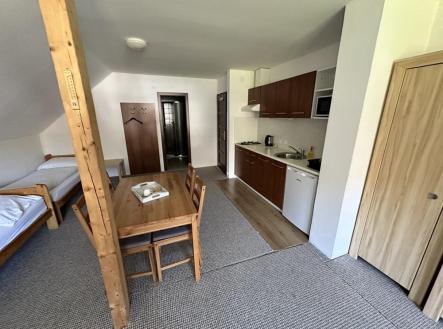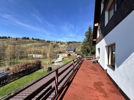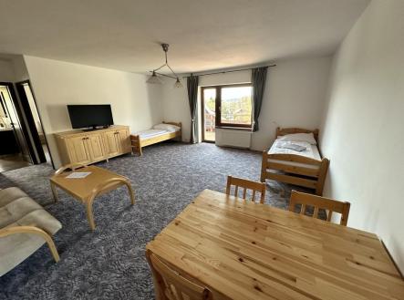 Nabízíme prodej rodinného penzionu ve velmi krásné a žádané lokalitě Jeseníků, Kunčice, Staré Město. Penzion se zavedenou a stále se rozšiřující klientelou se nachází na okraji obce v těsné blízkosti lyžařského areálu - SKI Kunčice. Penzion je samostatně stojící, třípodlažní s vjezdem na pozemek, zahradou a parkovacím stáním o celkové ploše pozemku 1459m2. Nabízí 7 apartmánů s kapacitou 27 lůžek, jeden z apartmánů je s terasou 20m2. Každý apartmán je vybaven kuchyňskou linkou a spotřebiči - lednice, mikrovlnná trouba, indukční dvouplotýnkový vařič, TV. Každý apartmán má své sociální zařízení - sprchový kout, umyvadlo s koupelnovou skříňkou a WC. Vše je nově vybaveno novým nábytkem včetně postelí. V podkroví se nachází další dvě místnosti, které je možno přebudovat na jeden, nebo dva apartmány. V přízemí penzionu se nachází velká společenská místnost s vlastním výčepem, prostorná kuchyně s jídelnou včetně spotřebičů - (2 x lednice, myčka, digestoř, elektrická trouba, plynový hořák, mikrovlnná trouba), dětský koutek, vstup na zahradu a také vstup k vnitřnímu bazénu o velikosti 6x12m s infrasaunou, samostatnou toaletou a sprchou. Dále se v přízemí domu nachází technická místnost - kotelna a lyžárna, která je vybavena novým vysoušečem lyžařských bot. Dům je také částečně podsklepený. Na zahradě o výměře 723m2 se nachází posezení se zastřešenou pergolou, ohniště a také venkovní lyžárna s kolárnou. Inženýrské sítě - elektřina 220/380V, vlastní vrtaná studna, ČOV, topení a ohřev teplé vody je zajištěn - PELETAMI (zásobník na 7 kubíků). Penzion se nachází na krásném místě a jeho velkou výhodou je také spousta běžkařských tratí a cyklostezek v blízkosti areálu PAPRSEK, který se nachází cca 7km od penzionu. Penzion prošel celkovou rekonstrukcí a je výhodnou investiční příležitostí. Více informací v RK. Průkaz energetické náročnosti budovy nebyl zatím majitelem předložen. V souladu s právní úpravou proto uvádíme energetickou třídu G.