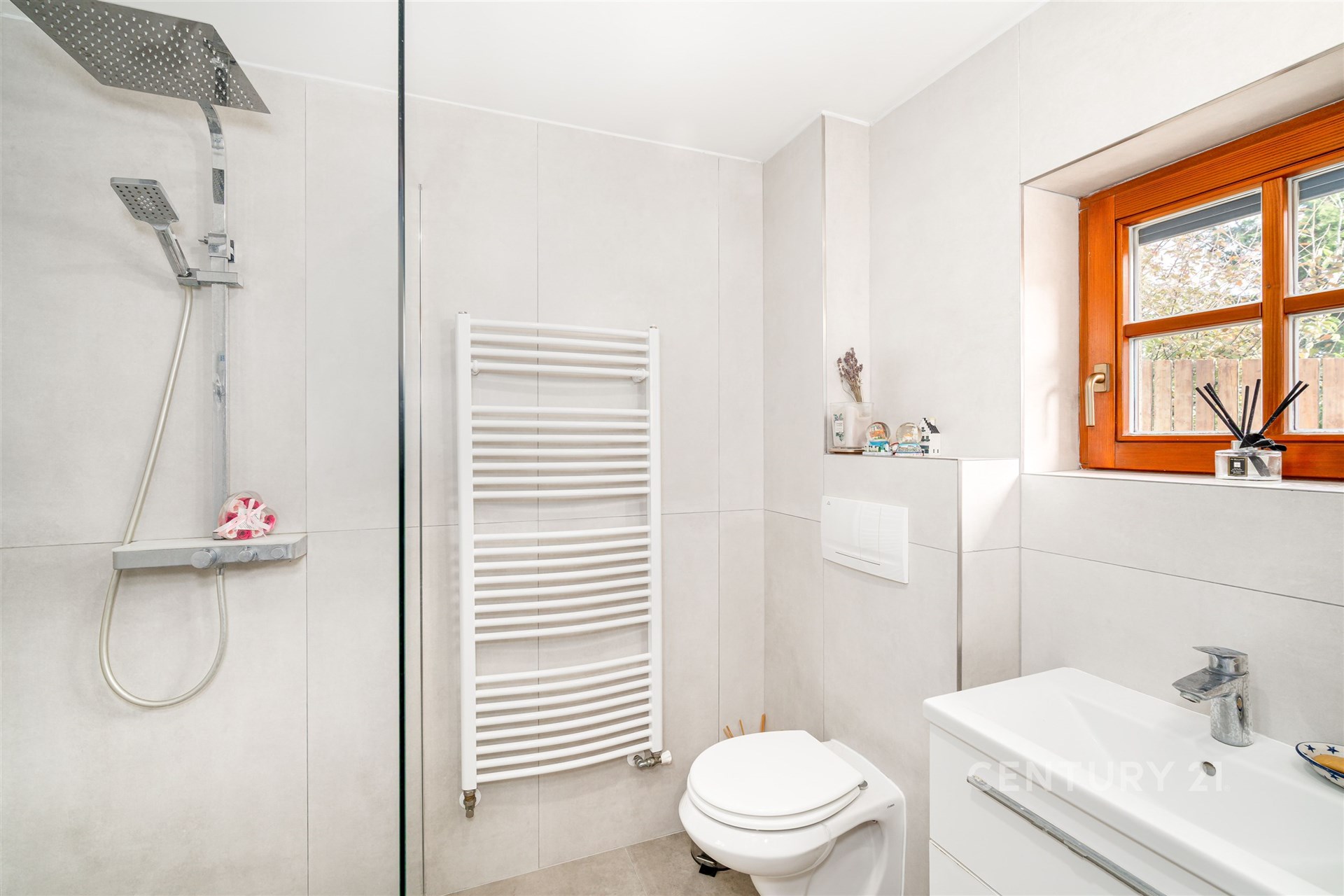 Prodej krásného rodinného domu ve Statenicích, s nádherným výhledem do údolí. V přízemí domu je zádveří s vestavěnou skříní, kompletně vybavená kuchyň a jídelna s jídelním stolem, která je propojená přes tři schody s obývacím pokojem s krbem. Odsud je vstup francouzskými dveřmi na zastřešenou terasu a dále do zahrady. Je zde i koupelna se sprchovým koutem a WC. V prvním patře jsou tři ložnice, šatna, velká koupelna s vanou a dvěma umývadly. K jedné ložnici přisedá balkón. Dům je celý podsklepený, ve sklepě je kompletní technické zázemí a dostatek úložného prostoru. Další úložný prostor nabízí půda přístupná z 2. NP, vestavěná skříň v ložnici, prostorná šatna mezi dvěma dalšími pokoji. V 2. NP je klimatizace pro zajištění komfortu i v letních měsících. Na zahradě je vyhřívaný bazén se slanou vodou, je velmi pěkně udržovaná. Vytápění je řešené elektrickým kotlem, zároveň je možné topit krbem v obývacím pokoji, ze kterého je teplo rozvedené do radiátorů v celém domě. Vytápění je tedy velmi úsporné a po instalaci solárních panelů a baterie může být dům kompletně soběstačný. Voda je z vlastní studny vedená přes čistící stanici, je v nejvyšší kvalitě. Odpad je nyní svedený do septiku, který je možné vyměnit za moderní biologický bez nutnosti vývozu. Součástí prodeje může být i vybrané zařízení pračka a sušička Miele, jídelní stůl a židle, posezení na terase. Tichá slepá ulice zaručuje klid, přitom veškerá občanská vybavenost je na dosah. Nedaleko je International School of Prague, pro menší děti KinderGarden. Na letiště se dostanete do 10 minut, na metro A Bořislavka taktéž. Autobusem cesta na metro trvá 13 minut. Orientační náklady na provoz jsou nyní 9 000 Kč/měsíc. Prodejní cena je konečná, zahrnuje provizi RK a právní servis.