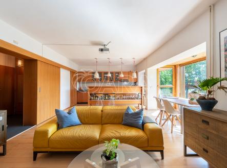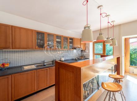 Nabízíme k pronájmu moderní prostornou vilu, která se nachází ve vyhledávané lokalitě pár minut od Prahy 6. Architektura a celkový koncept domu byly v roce 1998 oceněny titulem Dům roku. Zařízení nábytkem na fotkách neodpovídá současnému stavu, v domě je pár kusů základního nábytku. Dvoupodlažní dům 5+kk s garáží je charakteristický použitím přírodních materiálů a propojením se zahradou, která nabízí žádané soukromí. Důležitou součástí domu je rozlehlá terasa navazující na téměř všechny místnosti ve druhém podlaží. Díky krásnému výhledu na údolí je ještě umocněno všudypřítomné spojení s přírodou. V přízemí je velkorysý obývací pokoj s jídelnou (36 m2) a kompletně zařízená kuchyň s vestavěnými spotřebiči a se vstupy na zahradu. Za kuchyní je prostorná spíž, v přízemí dále ještě ložnice s přístupem na zahradu, koupelna a toaleta. V 1. patře se nachází tři ložnice, koupelna s toaletou a velká terasa. V domě je kvalitní dřevěná dubová podlaha nebo dlažba. Vytápění je řešeno elektrokotlem a ohřev vody boilerem. Součástí domu je rovněž garáž (27 m2). Na zahradě je vystavěný altán, kdy dole je úložný prostor a nahoře letní kuchyň s kouzelným posezením. Statenice mají dobrou dopravní dostupnost do dvou mezinárodních škol v Nebušicích a Sedlci, centra Prahy i na letiště Václava Havla. Autobusem 356 jste za 18 min na metru A Bořislavka, zastávka je přímo u domu. V obci se nachází kavárna s dětským koutkem, pekárna, květiny, kosmetika a kadeřnictví, soukromá mateřská škola, prodejna potravin a další. Ve volném čase lze využít fotbalové hřiště, jít se protáhnout a zacvičit na místní workoutové hřiště, navštívit novou knihovnu nebo se jít projít do lesa, do pivovaru v Úněticích nebo na Okoř. Dům je volný dle dohody od února. Převod elektřiny na nájemce, vývoz jímky 1x měsíčně, voda, odpadky. Kauce 106 000,-.