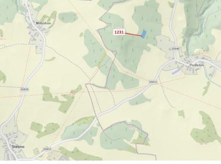 Lesní pozemek o výměře 1462 m2, podíl 1/1, katastrální území Podlešín u Stebna, obec Stebno, obec s