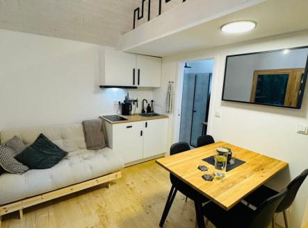 Prodej kouzelné moderní chaty v lesa – dokonalý únik pro pár či malou rodinu. Hledáte místo, kde vypnete, nadechnete se lesa a užijete si designové pohodlí? Tato čerstvě zrekonstruovaná chata o chytrých 17 m² s krásným půdním spaním je ideální volbou. Co vás okouzlí uvnitř? Promyšlený moderní interiér, který působí vzdušně a útulně. Pohodlná půdní ložnice přístupná bezpečnými schody. Toaleta i sprcha v elegantním provedení. Útulný kout s rozkládací pohovkou u prosklených dveří – perfektní místo pro zimní čtení. Kuchyňka i kávový koutek a vyhřívací panel pro celoroční komfort. A co venku? Nádherný vzhled chaty zasazené na klidném kraji lesa, téměř bez sousedů. Terasa s vířivkou plnou vody připravenou k nahřátí. Možnost grilování a večerní atmosféra díky modernímu stylovému osvětlení. Ať už hledáte místo k víkendovým útěkům z města, romantické pobyty nebo malý rodinný ráj, tady najdete vše a tohle klidové místo čeká právě na Vás.
