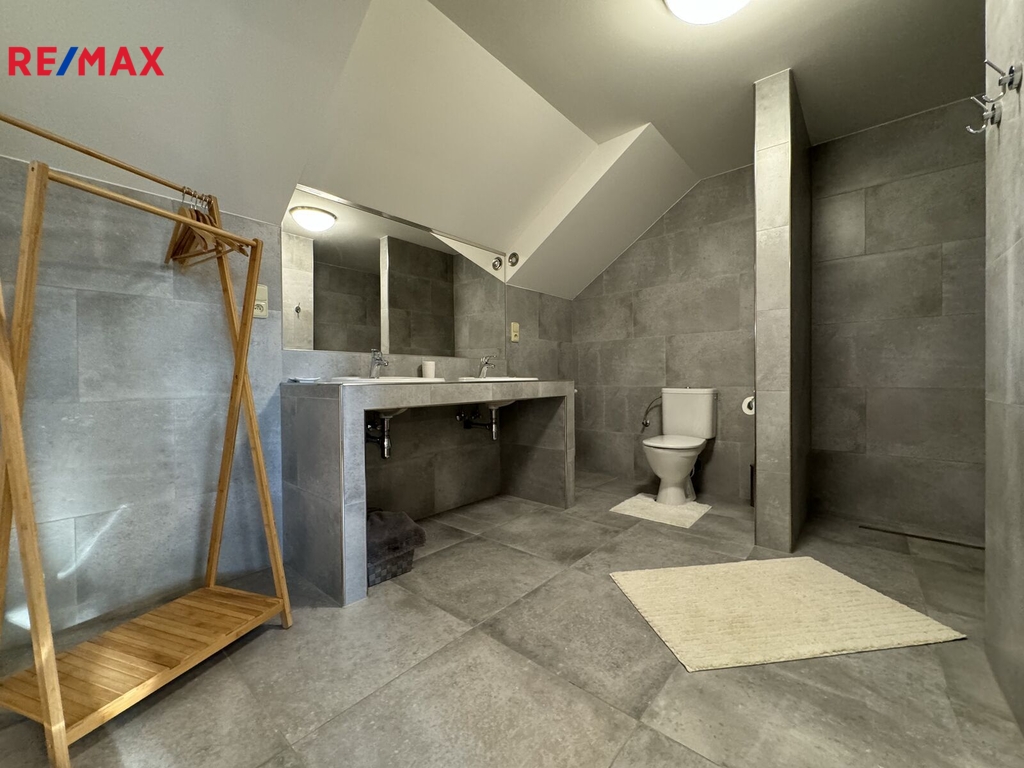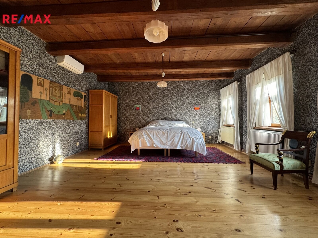 Hledáte něco výjimečného? Jiného? Na klidném místě s blízkou vzdáleností do Olomouce? Tato exkluzivní nabídka prodeje rodinného domu v Moravské Huzové u Štěpánova Vás jistě zaujme! Představujeme Vám tento nádherný rodinný dům s velkorysými prostory s dobrou dopravní dostupností do města Olomouce. Tento dům nabízí ideální kombinaci nadstandardního bydlení s rozlehlým nádvořím i zahradou, stodolou, hospodářskými přístavky se započatou rekonstrukcí, skladovými prostory, dílnou a soukromím. V čelní straně domu se nachází 2 vstupy a 1 průjezd, který vede na nádvoří, přes které lze pokračovat až do stodoly. V domě s celkovou podlahovou plochou 457,7 m² se nachází 2 byty (2x 4+1). V domě se nachází 8 místností (37,8 m²; 33,9 m²; 32,2 m²; 27,2 m²; 21,9 m²; 20,5 m²; 12,4 m²; 10,7 m²), 2 kuchyně (24,1 m² a 17,9 m²), 3 koupelny se sprchami a WC, 1 koupelna se sprchou i vanou, 3 samostatné WC, špíž (8,6 m²), úklidová místnost (7,3 m²), technická místnost s 2 zánovními plynovými kotly (každý pro jeden byt) a 2 sklepy (dohromady cca 40 m²). V hospodářským přístavcích se nachází skladové prostory a dílna (38,2 m²). Dům byl postavený v roce 1919 a rekonstruovaný v letech 2003-2005 (trámy a krytina včetně přístavků, dřevěná okna, kompletní interiéry s rozvody), 2017 (fasádní omítka, terasa, dílna), 2019 (tlaková kanalizace, hydroizolace), 2022 (klimatizace, injektáž zdí v části domu. Okna v domě jsou dřevěná s izolačním dvojsklem. Vytápění a ohřev TÚV je zajištěn plynovými kotli. V domě jsou vrchní 3 místnosti klimatizovány. Podlahová krytina obytných místností je převážně dřevěná (3 klimatizované místnosti - masivní dub; ostatní borovice); v kuchyních, koupelnách, WC a dílně je dlažba). Hospodářské přístavky stodola nabízí možnost dalšího využití dle Vašich představ. Dům se nachází v krátké vzdálenosti do Olomouce (15 minut), Šternberku (9 minut), Litovle (16 minut). Zajistíme Vám financování koupě této nemovitosti – bezplatná konzultace s našim finančním poradcem. Více fotografií na stránkách RE/MAX (realitní servery pojmou maximálně 30 fotek)! Bližší informace u makléře nabídky.
