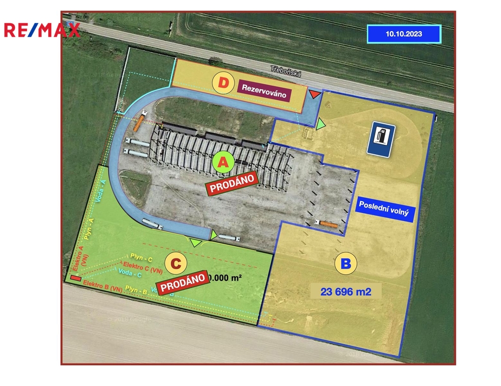 Nabízíme ke koupi zasíťovaný a kompletně stavebně připravený pozemek v nově budované průmyslové zóně (výroba, sklady, logistika). Pozemek je situovaný v katastrálním území obce Štěpánovice, v těsné blízkosti komunikace I/34 (E 49 : České Budějovice – Třeboň - Vídeň), v současné době (zprovozněna přeložka silnice I/34), s rychlejším propojením lokality na dálnici D 3 – Praha – České Budějovice - Linz (sjezd na 131 km dálnice vzdálen cca 5 minut jízdy) a také na město České Budějovice. Pozemek, ve schématickém plánu (obrazová část inzerce) označený jako B, je posledním dostupným ke koupi (pozemky A a C prodány, pozemek D zarezervovaný) a má celkovou výměru 22.722 m2. V platném Územním plánu obce Štěpánovice je veden jako součást plochy s označením SV – Plochy smíšené a výrobní a je ho možné využít zejména pro výstavbu objektů sloužících pro výrobu a skladování (průmyslové a výrobní areály, logistický areál, sklady, zařízení pro obchod a administrativu, parkovací a odstavná stání, garáže, čerpací stanice pro potřebu provozovatele, byty pro osoby spojené s provozem, atd.) Podmínky pro využití území dle územního plánu: - celková zastavěnost plochy : 75 % - výška budov do hřebene: max. 17 metrů Stavebně technická připravenost pozemku: - platné územní rozhodnutí - veškeré zpevněné plochy jsou koncipovány pro provoz vozidel s vysokou tonáží - realizováno kompletní odvodnění ploch (kanalizační síť v celém areálu, retenční nádrž, odvodňovací příkopy) s následným napojením na veřejnou kanalizaci - přípojka vody na pozemku - plynová přípojka a přípojka elektřiny na hranici pozemku - přístup na pozemek je zajištěn samostatným vjezdem (možnost příjezdu z obou směrů) Stavební pozemek s komplexní připraveností, v rozvíjející se průmyslové zóně ( plánované rozšíření této zóny až k areálu firmy BEST a.s.), v lokalitě s velmi dobrou dopravní dostupností - to jsou hlavní znaky této nabídky. Pro detailnější informace nebo v případě zájmu o prohlídku mne prosím kontaktujte na níže uvedených kontaktech