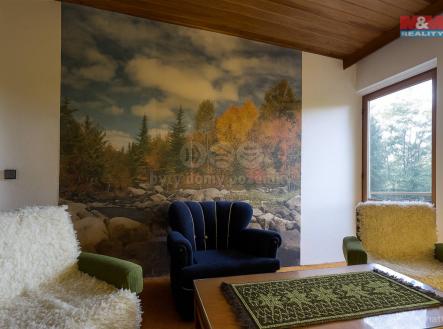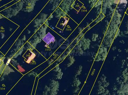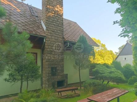 Nabízíme k prodeji krásnou útulnou chatu s číslem evidenčním a potenciálem k celoročnímu bydlení. Chata z roku 1985 se nachází ve velmi klidné rekreační části obce Dalov, v těsné blízkosti lesa a potoka. Je ideálním místem pro milovníky přírody i aktivního odpočinku. Zastavěná plocha je 53 m2 s výměrou zahrady 394 m2. Na zahradě je k dispozici venkovní krb s posezením a udírnou, který vybízí k příjemnému trávení času s rodinou a přáteli. V přízemí chaty se nachází obývací pokoj s krbem a vstupem na prostornou terasu o velikosti 12 m², dále kuchyně, koupelna, WC a vstup do sklepa z chodby. V patře se nachází relaxační místnost a ložnice – obě se vstupem na terasu o velikosti 8m2, koupelna, WC a přístup na půdu. Garáž o vel. 10 m2 je součástí chaty, taktéž kotelna a dílna. Chata je vybavena elektřinou, kotlem na tuhá paliva, radiátorovým vytápěním a bojlerem na ohřev vody. Celá chata je podsklepená, obložená dřevem se zateplenými stropy a izolovanou střechou.