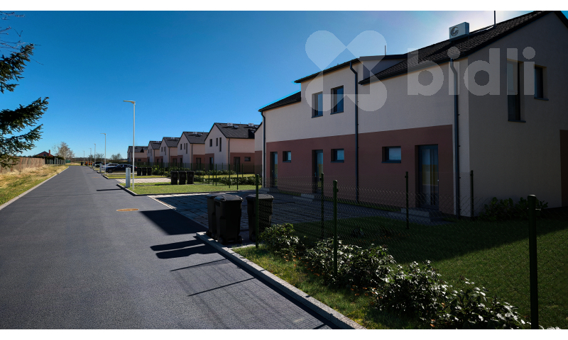 Novostavba nízkoenergetického mezonetového bytu o dispozici 3+kk a podlahové ploše 85,5 m2, ve zděné variantě (v rámci projektu je možné zvolit i prov edení nízkoenergetické montované dřevostavby). Byt je součástí trojdomu - tedy domu se třemi samostatnými jednotkami. Svým uspořádáním připomíná spíše řadový rodinný dům, ideální pro moderní a úsporné bydlení. V přízemí se nachází prostorný obývací pokoj s kuchyňským koutem, koupelna a zádveří. V patře pak najdete ložnici, další pokoj, druhou koupelnu a chodbu. K bytu náleží také snadno udržovatelná zahrada o rozloze 186 m2, která nabízí prostor pro relaxaci i volnočasové aktivity. Ke každé bytové jednotce náleží 1 parkovací stání. Každá bytová jednotka je vybavena vlastní fotovoltaickou elektrárnou pro výrobu elektrické energie, přičemž přebytky jsou využívány k ohřevu vody. Díky energeticky úsporné konstrukci a fotovoltaickému systému budou provozní náklady na vytápění, osvětlení, vaření a ohřev vody mimořádně nízké. Součástí vybavení je rovněž tepelné čerpadlo vzduch/vzduch se dvěma vnitřními a jednou venkovní jednotkou. Klienti mají možnost volby finálních povrchových úprav interiéru - podlahových krytin, dveří, obkladů i dlažby - dle vlastního vkusu a preferencí.Termín dokončení jednotky u prvních domů bude do 31.12.2027.