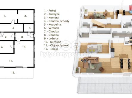 Prodej rodinného domu v Čelechovicích s možností dvougeneračního bydlení. Nabízíme k prodeji rodinný dům v klidné části obce Čelechovice, ideální pro velkou rodinu nebo dvougenerační bydlení. Dům má dvě nadzemní podlaží a jedno podzemní podlaží, celkem čtyři místnosti, s užitnou plochou 106 m². Dispozice je nyní 2+1, s možností úpravy dle potřeb nového majitele. Velká místnost je připravena k přestavbě a půda nabízí další možnosti rozšíření. K domu náleží technické zázemí, garáž, chlévy a stodola. Pozemek o rozloze 668 m² se může rozšířit ještě o pronajatou vedlejší zahradu za symbolickou cenu s možností pokračování pronájmu. Skvělá dostupnost a klidná poloha činí z této nemovitosti výjimečnou nabídku.