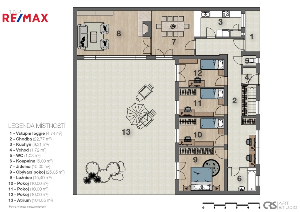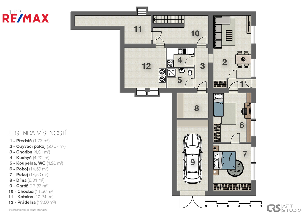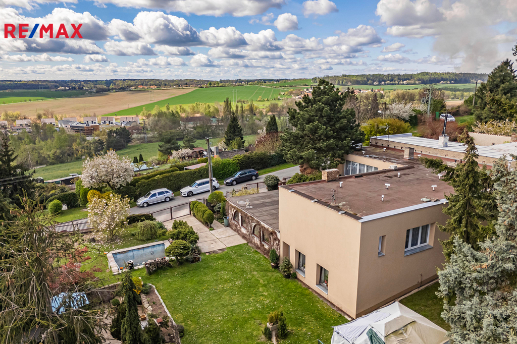 Nabízíme vám velmi prostorný dvoupodlažní rodinný dům, nacházející se ve velmi klidné lokalitě obce Stochov, která je obklopena malebnou krajinou a najdete tady příjemné místo k životu s přírodou na dosah. V přízemí domu máte bytovou jednotku o dispozici 3+1 a technické zázemí, jehož součástí je kotelna, sklad, dílna a prádelna. Dále pak garáž pro osobní automobil a vinný sklípek. V patře se nachází hlavní bytová jednotka s pěti obytnými pokoji, kuchyní, jídelnou a dominantou je velká sluneční terasa o výměře 110 m2, kde můžete odpočívat, nebo posedět s rodinou či přáteli u grilování. Celková užitná plocha domu činí 262 m2 (obytná pl. 160 m2) a za zmínku stojí, že délka hlavního bytu z jednoho konce na druhý měří 28,29 m. Rozsáhlá plocha střechy se dá využít mnoha způsoby (elektrárna, přístavba, zahrada). Vchod do technické místnosti je umožněn z obou jednotek. Vchod do garáže a dílny je zajištěn zvenku garážovými vraty, případně je možno zde vejít také z malého bytu. Garáž s dílnou jsou odděleny protipožárními dveřmi. Celý dům je zateplen polystyrénovým systémem a původní dřevěná okna byla vyměněna za nová plastová. Tento dům dosáhne na dotační programy, které ulehčí rekonstrukci. Vytápění je kombinovanými zdroji, včetně plynového kotle, elektrokotle a kotle na tuhá paliva. Případně si můžete zatopit ve dvou krbech na dřevo, které dotváří komfortní a příjemnou atmosféru domova. Nemovitost je napojena na veřejnou kanalizaci, vodovod i plynovod. Nemovitost se nachází na pozemku, který patří k nejkrásnějším ve Stochově. K domu náleží zahrada s výměrou 671 m2, kde najdete mnoho krásných zákoutí včetně dřevěné chaty a rádi zde budete trávit svůj volný čas. V obci máte veškerou potřebnou vybavenost včetně supermarketu, potravin, pošty, drogerie, lékárny, železářství, pizzerie, cukrárny, knihovny a kina. Ordinaci tady má praktický lékař pro dospělé, děti i zubní lékař. Rodiny s dětmi jistě ocení, že v docházkové vzdálenosti je školka, škola a umělecká škola. Sportovní nadšenci uvítají místní víceúčelový sportovní areál, kde mohou využívat fotbalové hřiště, tenisové kurty, beach hřiště, in-line dráhu, skatepark a mnoho dalšího včetně dětského hřiště. V kryté hale si můžete zahrát bowling, badminton, squash, zajít si do posilovny, na jógu, nebo třeba do sauny. Dopravní dostupnosti se bát nemusíte, autobusová zastávka je od domu vzdálená pár minut chůze a snadno se tak dostanete do Prahy i okolních měst. Případně můžete k cestování využít vlak, na zastávku dojdete za čtvrthodinu. Pokud vás naše nabídka zaujala, neváhejte se ozvat a rádi vám poskytneme další informace.