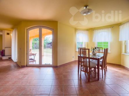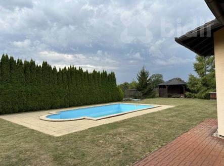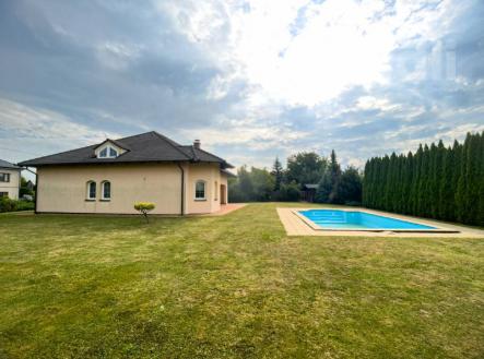V obci Stolany nabízíme krásný rodinný dům s garáží a užitnou plochou 314 m2, na pozemku o celkové velikosti 1 599 m2. Už na první pohled vás zaujme příjemná atmosféra, promyšlená dispozice a perfektně udržovaná zahrada s velkým bazénem 10 × 5 m. Přízemí domu je jako stvořené pro společné chvíle s rodinou a přáteli - prostorný obývací pokoj s krbem plynule navazuje na jídelnu a kuchyň, odkud je to jen pár kroků na zahradu. Najdete tu také ložnici, pracovnu a koupelnu se sprchovým koutem. V patře se nachází další ložnice, dva samostatné pokoje, šatna a stylová koupelna s rohovou vanou, která nabízí opravdový relax po dlouhém dni. Komfort bydlení ještě zvyšuje podlahové vytápění v celém domě, centrální vysavač a studna. Na dům navazuje prostorná garáž, kryté parkovací stání a na zahradě kromě bazénu potěší i zahradní domek. Lokalita je ideální pro ty, kdo chtějí bydlet v klidu a přírodě, ale zároveň mít vše na dosah - Chrudim je jen 4 km, Pardubice 14 km. Pokud hledáte rodinný dům, který kombinuje pohodlí, styl a skvělou polohu, zveme vás na osobní prohlídku.
