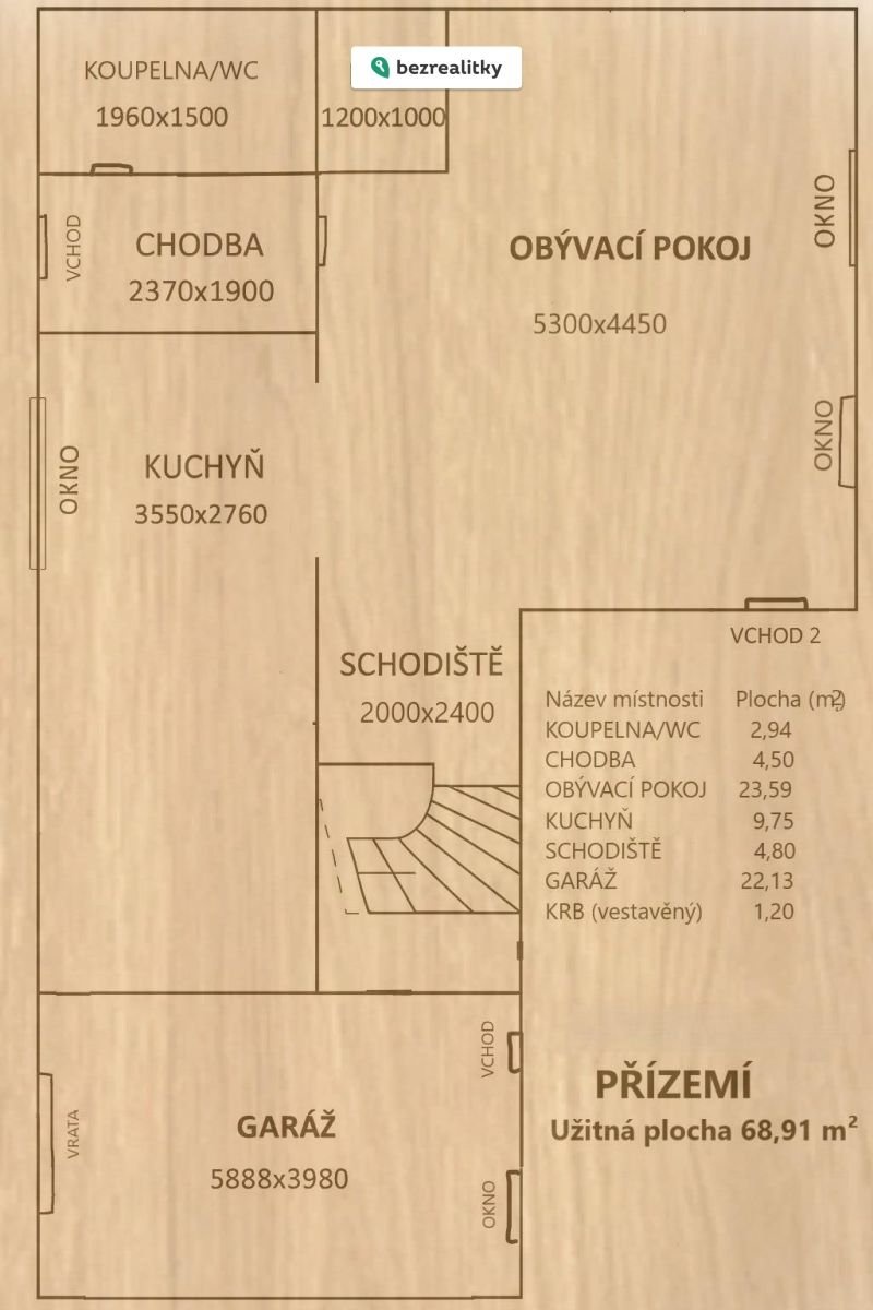 Nabízím rodinný dům o dispozici 4+kk ve vyhledávané lokalitě v obci Stonava, zkolaudovaný v roce 2010. Dům je kompletně zateplený polystyrenem, půdní prostor je izolovaný foukanou izolací včetně štítů, střecha Bramac. Dispozice: • 1. NP: prostorný obývací pokoj s kuchyňským koutem včetně spotřebičů (indukční deska, elektrická trouba, myčka), koupelna s WC, předsíň, garáž. • 2. NP: ložnice, 2 pokoje, koupelna s WC, prostorný balkón přístupný z koupelny i ložnice. Dům prošel částečnou rekonstrukcí. Vytápění je řešeno tepelným čerpadlem s možností dálkového ovládání v kombinaci s podlahovým vytápěním a radiátory, případně krbem. Ohřev vody zajišťuje el. bojler. Dům je napojen na kanalizační a vodovodní řád, elektrická přípojka 230 V / 380 V, plyn na hranici pozemku. Součástí prodeje je rovinatý, oplocený pozemek o celkové výměře 1737 m², kde se kromě ovocných keřů a stromů nachází zahradní domek, pergola, terasa a jezírko. Součástí stavby je také prostorná garáž se sekčními vraty na dálkové ovládání, stejně jako příjezdová brána. Zabezpečení GSM alarmem zajišťuje ochranu domu s možností napojení na pult centrální ochrany. Dům je situován na velmi klidném místě, na konci ulice u lesa. Veškerá občanská vybavenost – škola, školka, obchod, lékař, restaurace, zastávka autobusu - v dosahu chůze. Do okolních měst (Karviná, Český Těšín, Havířov, Ostrava) trvá jízda autem jen pár minut. V případě zájmu mě lze kontaktovat prostřednictvím zpráv na komunikační platformě. Nabídka je určena pouze pro přímé zájemce. RK prosím nevolat. Tato nemovitost je určena výhradně přímým zájemcům o koupi. Na inzerát můžete také reagovat přímo na webu Bezrealitky: https://www.bezrealitky.cz/nemovitosti-byty-domy/971893-nabidka-prodej-domu-stonava